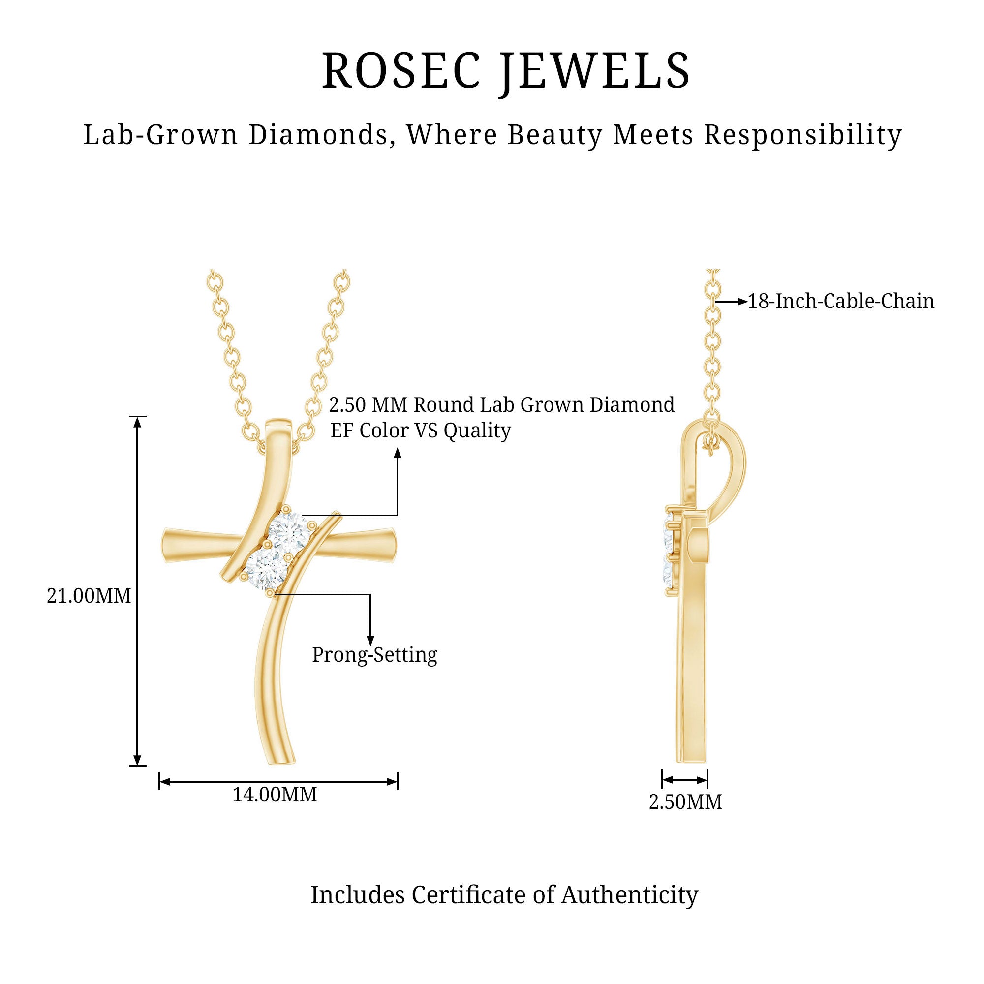Searching for a unique pendant for her, Rosec Jewels got you with this Diamond Cross Pendant. This minimal pendant is handcrafted with two Round Shape EF-VS Quality Lab Grown Diamonds. The best feature of this Cross Necklace is the Hidden Bail which gives it a seamless look. This 2 Stone Pendant perfectly represents your faith and spiritual belief. This faith necklace will be delivered in the Premium Quality Jewelry Box along with the certificate of Certified gemstones.