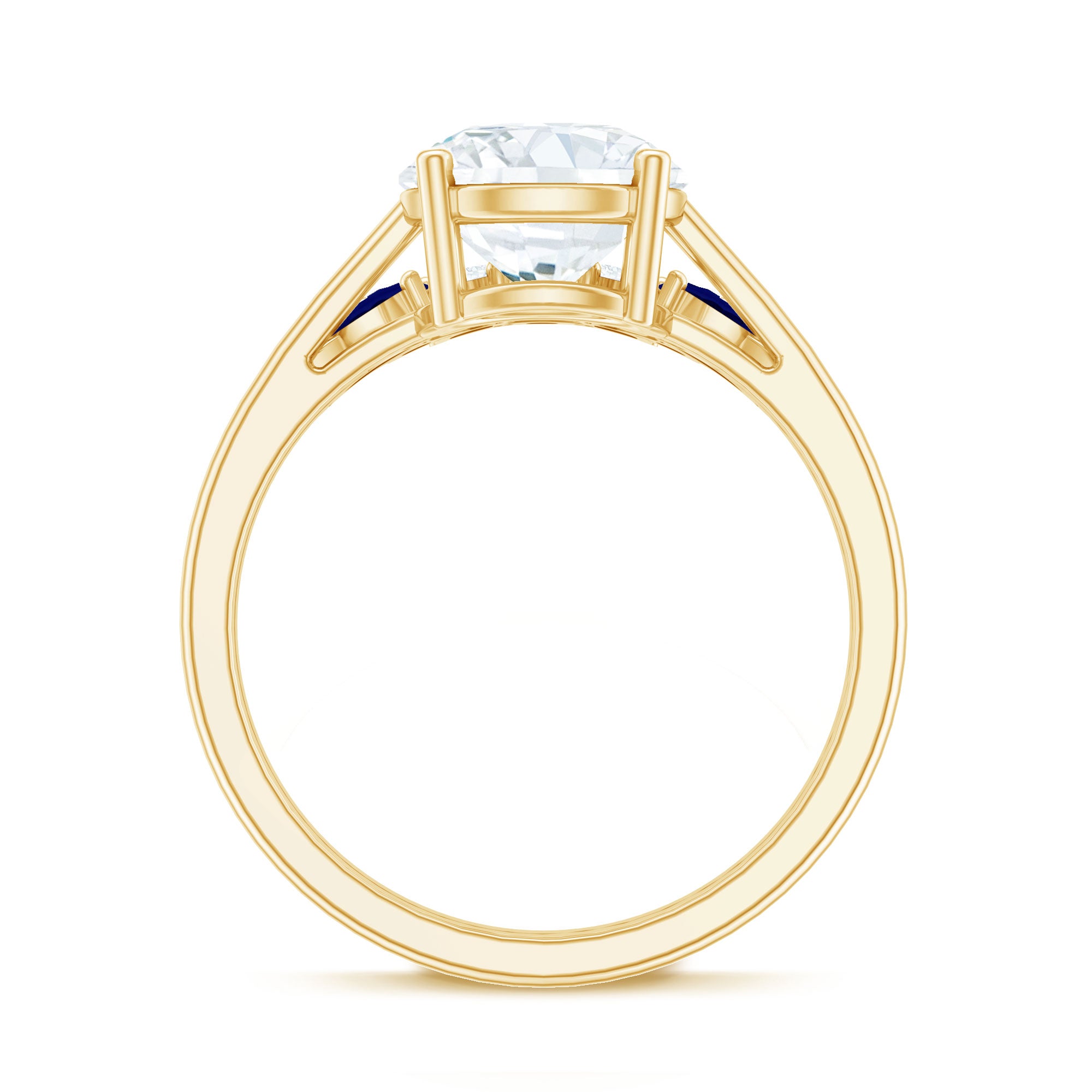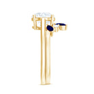 This classic Bridal Ring Set features a dazzling combination of a circular engagement ring and a curved enhancer ring, creating a perfect blend of elegance and boldness. At the center of this Engagement Ring with Band is an 8 MM round shaped lab made diamond of EF-VS quality set in secure prong setting. Adding a unique twist, the stackable ring beautifully hugs the Solitaire Ring with alternating round diamonds and marquise shaped blue sapphires. Each gemstone in this Solitaire Wedding Ring Set is securely set in a secure prong setting, allowing to show the perfect balance of shimmer and color. This Diamond Ring Set is a versatile accessory you can wear it separately or stack it with each other, it ensures an ideal choice for any special occasion and everyday wear.