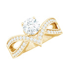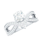 Capturing hearts with timeless elegance, this Designer Engagement Ring is a masterpiece that seamlessly blends sophistication and style. Meticulously crafted, this ring is adorned with 6x6 mm Round Shape Lab Grown Diamond gemstones studded over the Interlocking V Shape Band, symbolizing eternal love. Elevate your love story with this enchanting symbol of commitment. Ef-Vs Quality Diamond is placed in this Man made Diamond Ring which makes the ring center of attraction.
