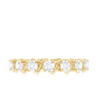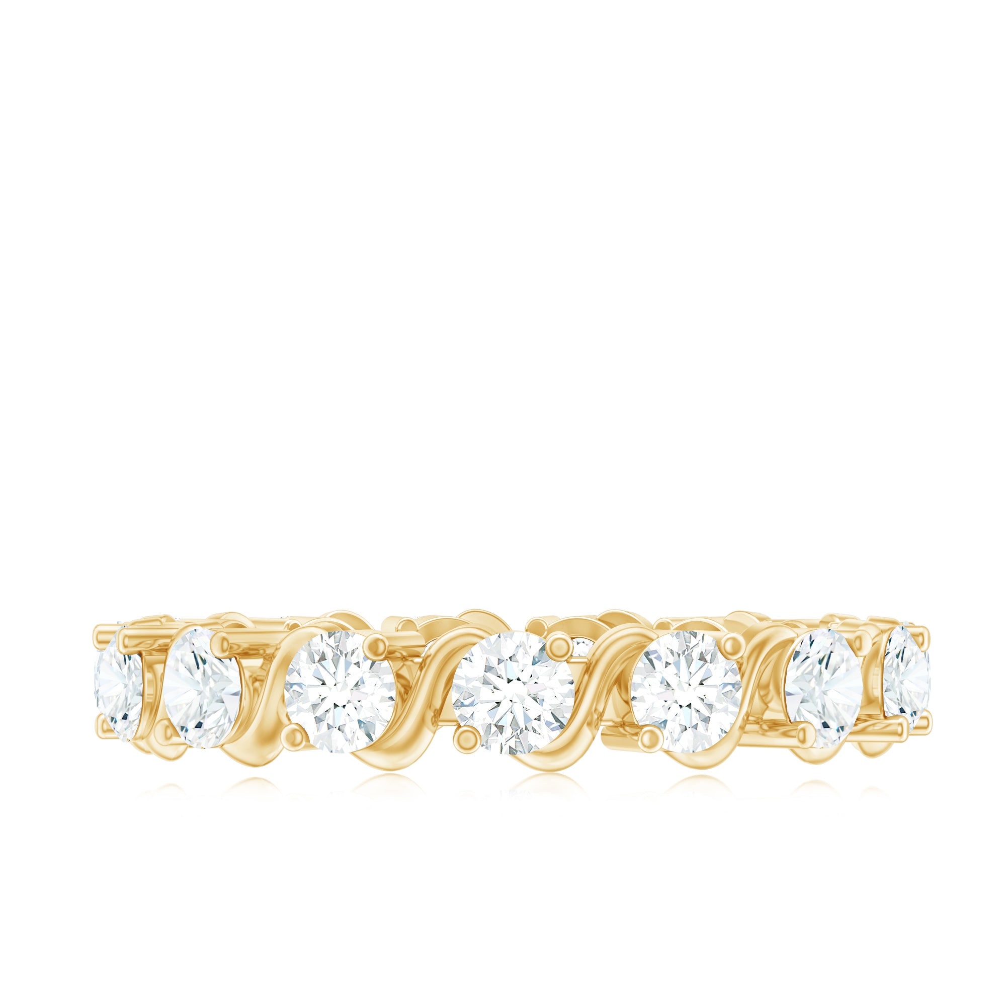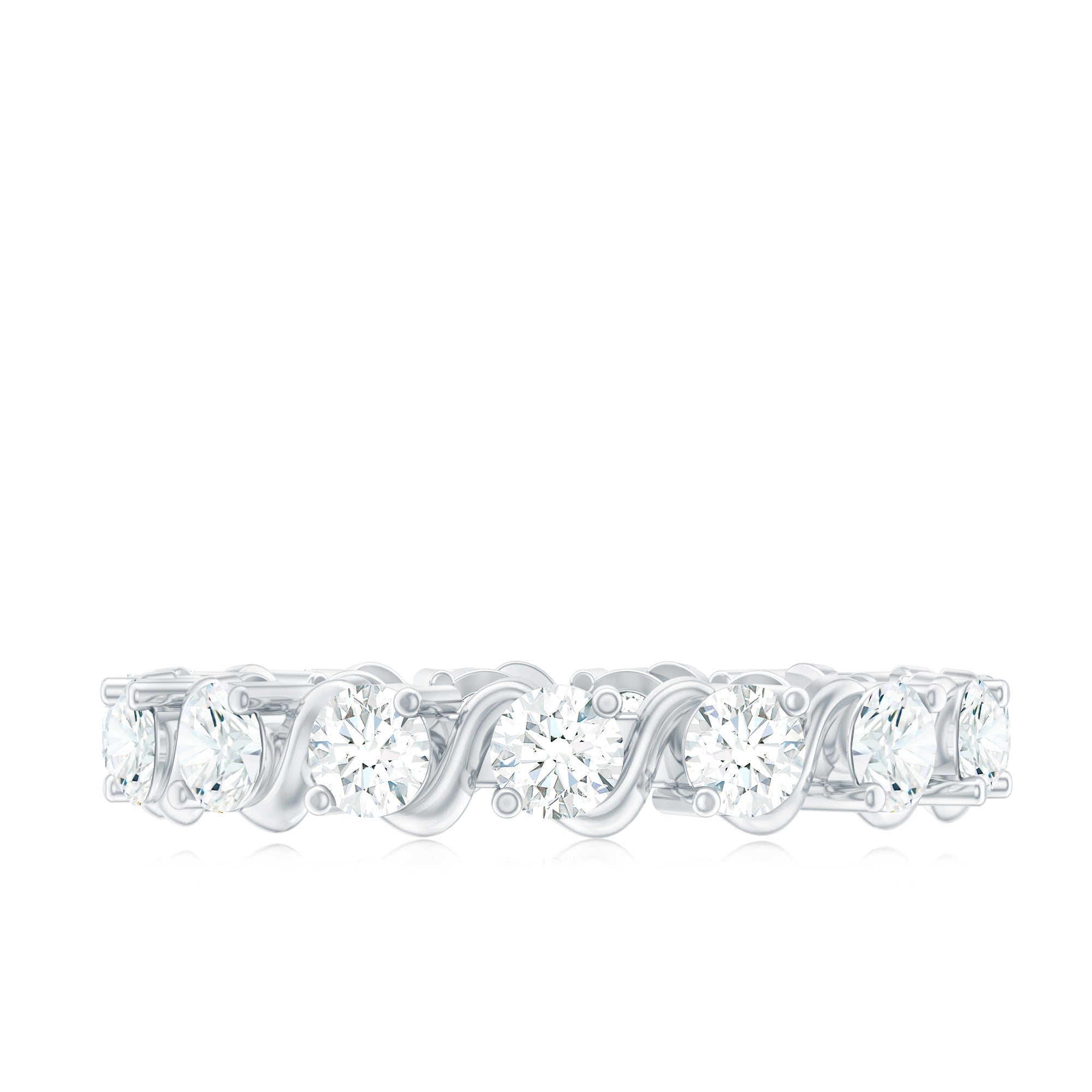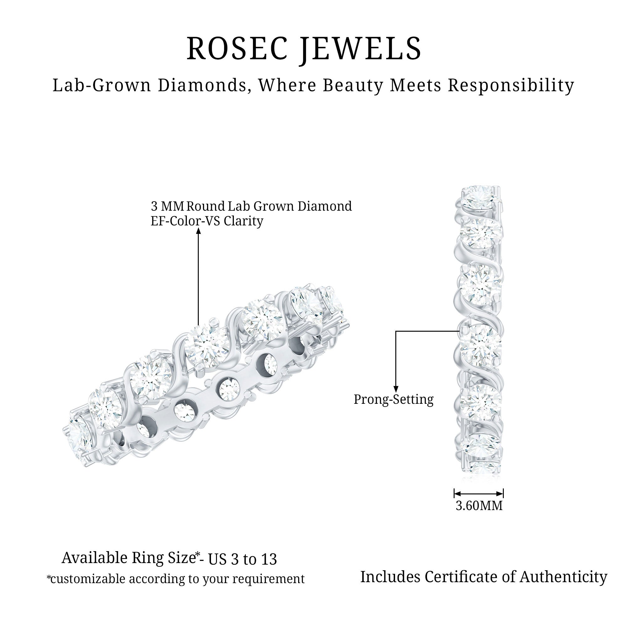 Start the wedding anniversary day by presenting this Eternity Diamond Band to your wife, embedded with round cut lab made diamond in 2-prong setting. This Minimal Diamond Ring has unique twisted patterns alternating with round diamonds of EF-VS quality. The sparkling synthetic diamonds make this Stackable Ring for Women a memorable present for her on a special day. Get her this beautiful Full Eternity Ring, which can layer up with her Engagement Ring. For the safe and secure arrival of this ring, a signature box packing is there along with a gemstone authenticity certificate.