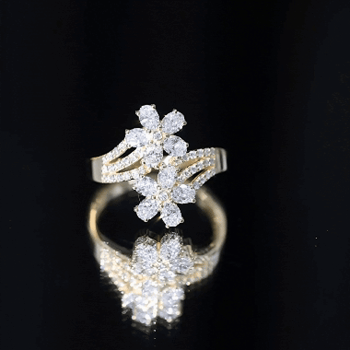 Do not settle for an ordinary engagement ring when you can wear a masterpiece on your finger. This Flower Engagement Ring is adorned with two breathtaking floral motifs each crafted with five oval shaped lab grown diamonds surrounding the dainty bezel set stones in the center. The split shank is also decorated with smaller diamonds, ensuring the Cocktail Engagement Ring shines from every angle. Whether you are dressing up for a glamorous evening event, a wedding reception, or a festive celebration, this Diamond Ring for Women will be the ultimate finishing touch to your outfit. No matter how you style it - solo or with other jewelry pieces, this beauty guarantees all eyes will be on you.