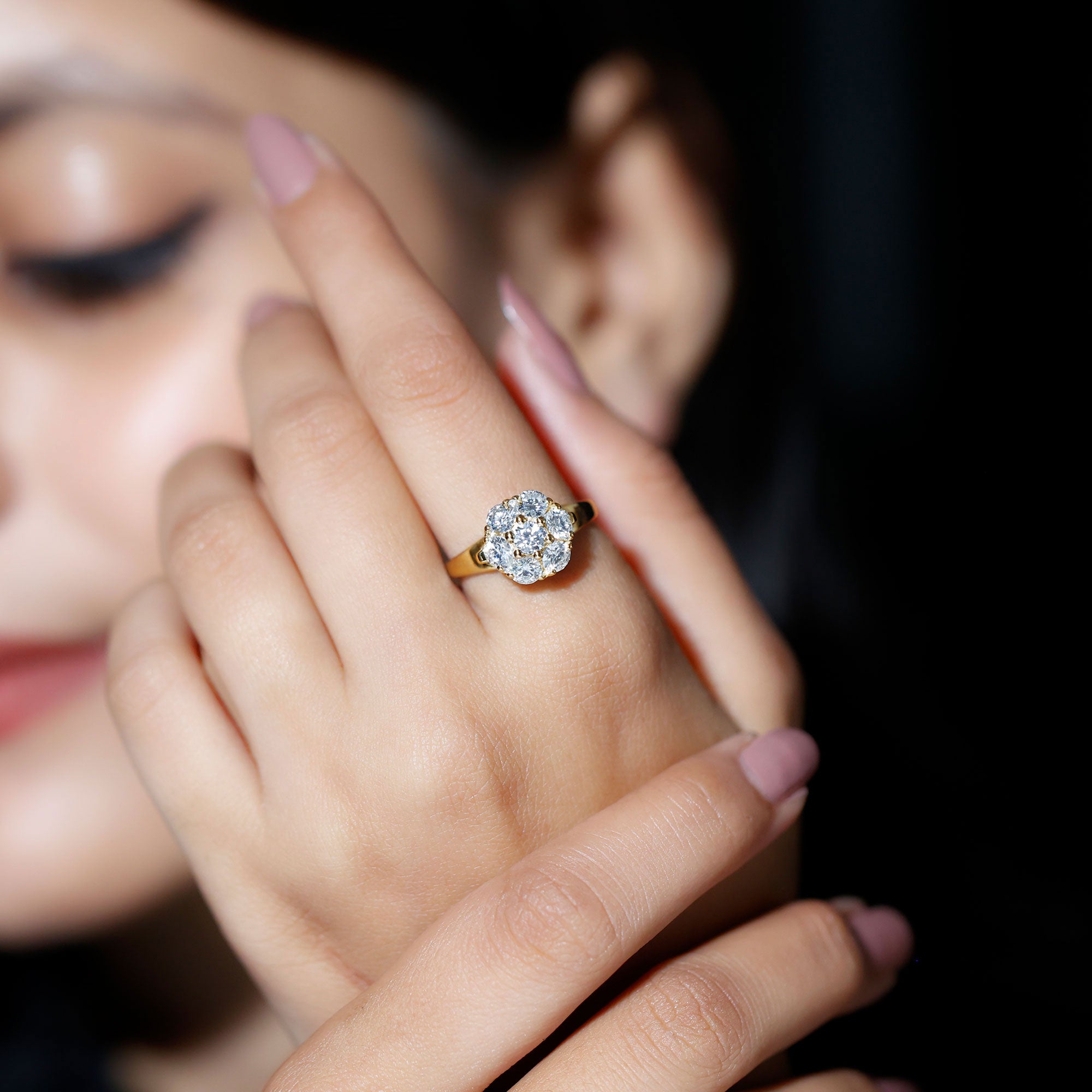 Make a stunning style statement with this unique Lab Grown Diamond Ring, that carries its own symbolism. Having a vintage appeal this Flower Diamond Ring has unique and timeless design beautifully mimicking the petals of a flower. This elegant design is sure to be her favorite and a timeless piece of jewelry which is adorned with Round Shaped Lab Grown Diamond in Prong Setting making a beautiful flower design on the band. This Floral Engagement Ring is sure to be a head-turner with its truly unique look. The sparkle and brilliance of EF-VS Lab Grown Diamond is beautifully designed for the one who loves the intricacies of design. This Flower Ring is a unique twist on the classic engagement ring representing floral inspirations.