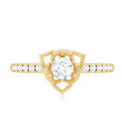 Embrace the eternal beauty of nature with our Flower Promise Ring featuring a brilliant 4 mm round Lab Grown Diamond at its heart, encircled by delicate metal floral petals and adorned with shimmering side stones. Meticulously crafted, this Promise Ring reflects vibrance with Ef-Vs Quality Diamonds. The Rosec Jewels commitment to environmental consciousness. Make a promise that blooms forever with this ethically crafted symbol of love and sustainability with this Diamond Ring.