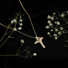 Our Diamond Cross Necklace is a stunning creation that beautifully merges faith and love into a single, graceful design. It showcases a striking cross shape embellished with dazzling round cut diamonds of EF-VS quality. At the center of the Lab Grown Diamond Pendant Necklace is a charming curved heart that artfully intertwines with the cross, symbolizing everlasting love and commitment. This Cross Heart Necklace is perfect for everyday wear or on special occasions. Share your blessings and convey your infinite love to someone special with this Cross Pendant, which speaks volumes when words fall short.