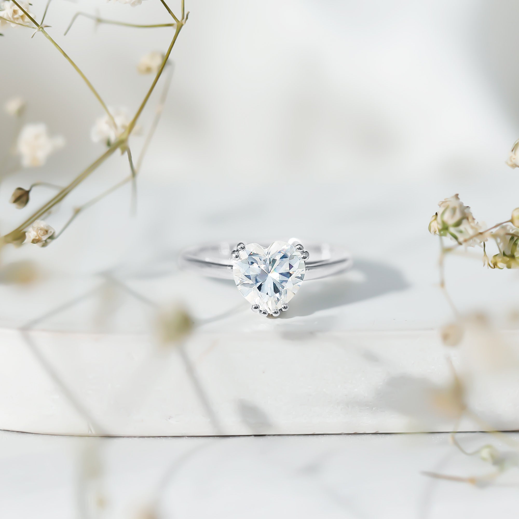 Certified Lab Grown Diamond Heart Engagement Ring 8 MM with Double Prong
