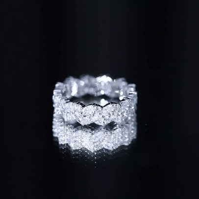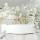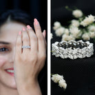 Treat the one you love with this captivating Diamond Wedding Band Ring, it is sure to make her heart skip a beat. A perfect addition to her Jewelry Collection, this Leaf Eternity Ring complements all her favorite looks with unmatched sparkle. It features two rows of alternating marquise and round shaped lab grown diamonds, carefully arranged and set in secure prong setting. The diamonds are lab grown and boost EF-VS quality, so you can get the same sparkle and durability as the mined ones but in a more affordable way. Whether it is your wedding or anniversary, or you are attending a formal party or casual dinner, this Diamond Eternity Band brings a perfect balance of nature-inspired beauty and timeless sophistication.