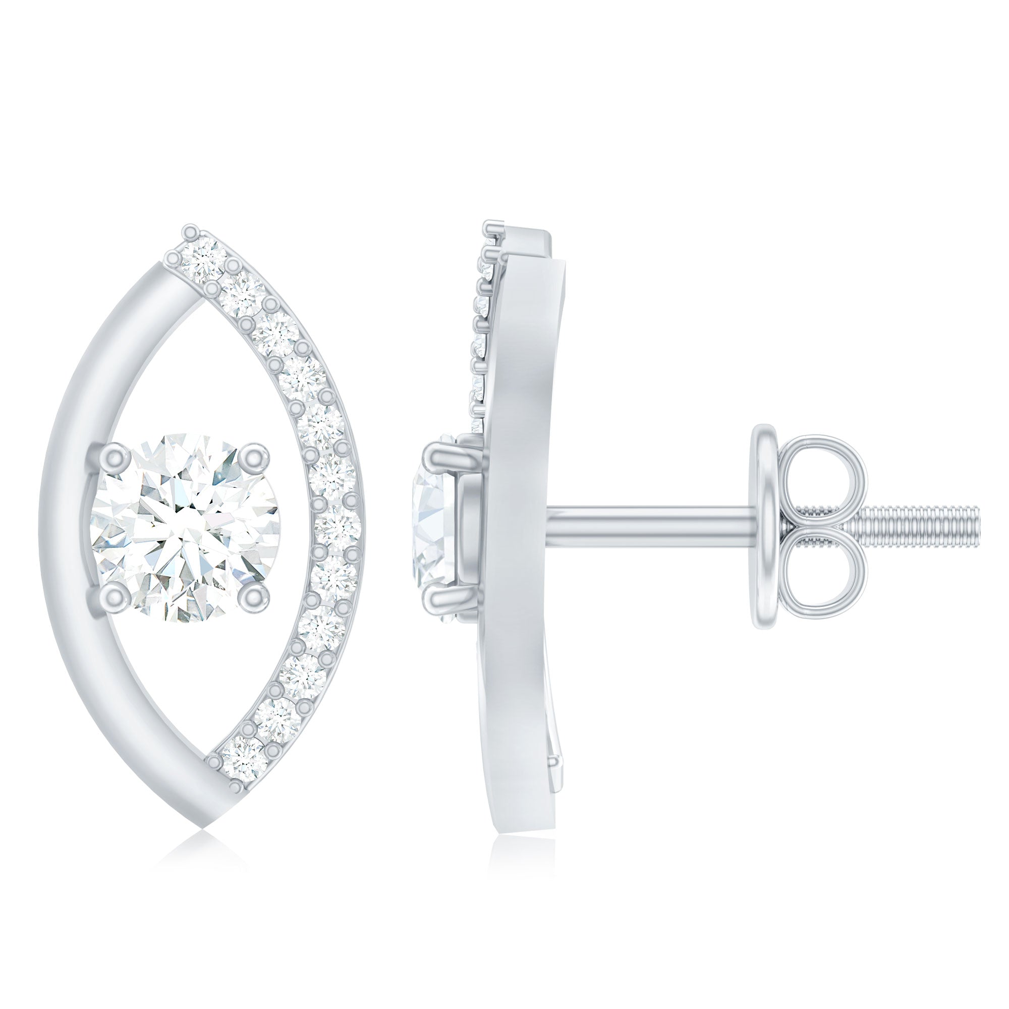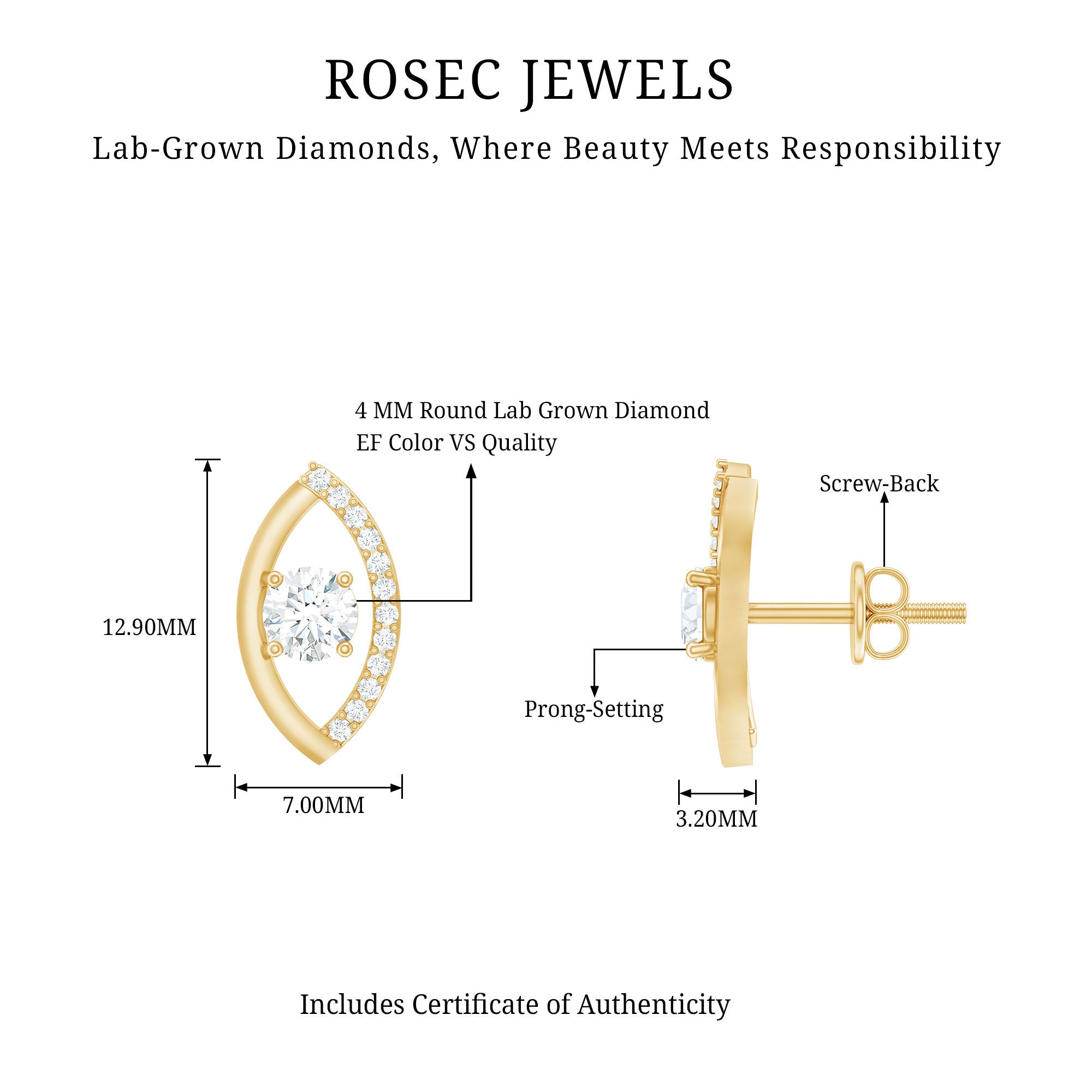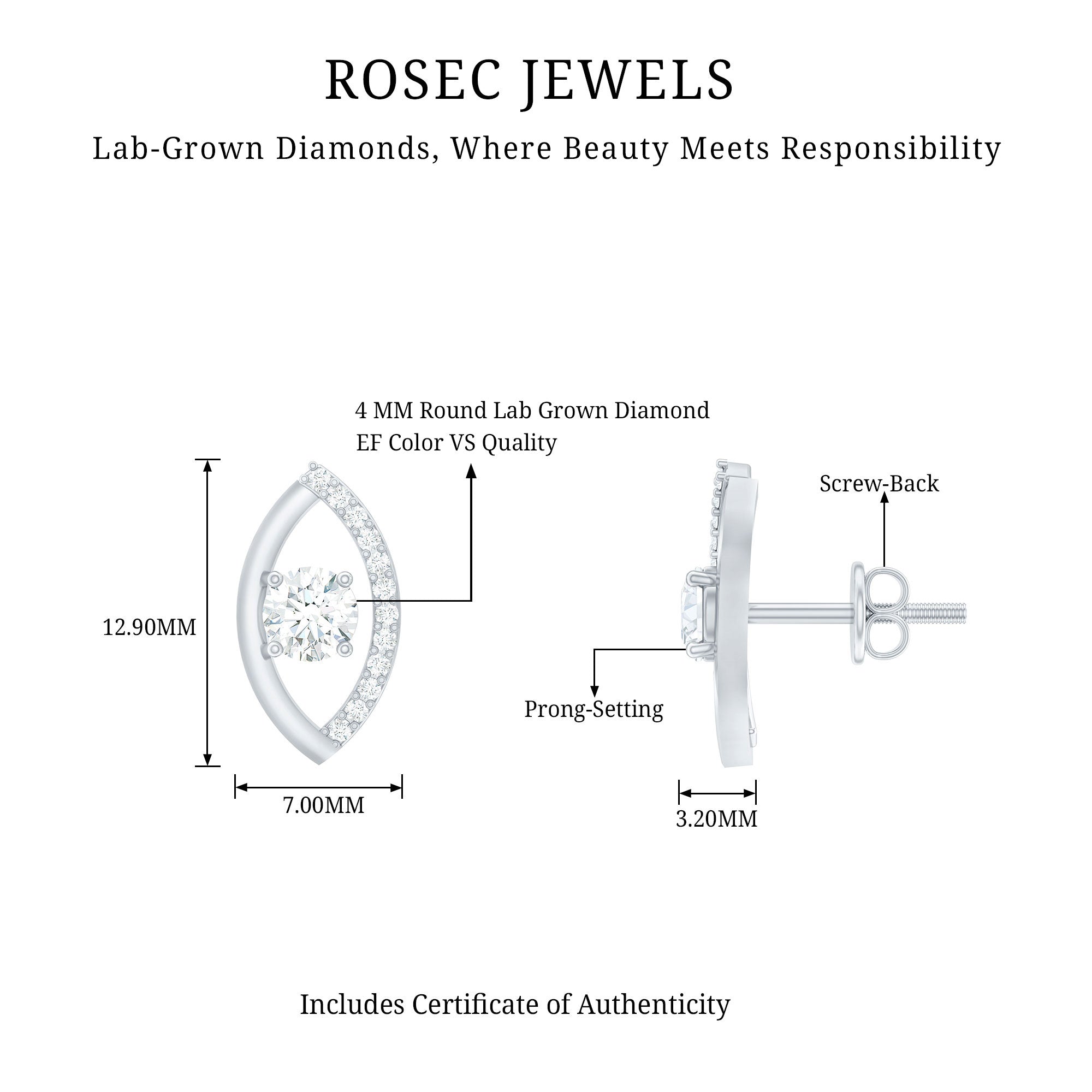 These mesmerizing Minimal Leaf Stud Earrings redefine elegance with nature-inspired grace. Crafted with perfection, each Earring showcases 4 mm Round Shape Lab Grown Diamond gemstone set in Prong Setting with an accent, radiating a subtle sparkle. The Screw Back Closure ensures a secure fit, symbolizing both sophistication and modernity. These (lab created) Diamond Earrings are a testament to Rosec Jewels commitment to ethical luxury, combining sustainable practices with timeless beauty. Our Ef-Vs quality Diamond Stud Earrings come in a signature jewelry box, make your special ones feel happier than ever by presenting them these Diamond Studs as a birthday gift, mothers day gift, anniversary gift, Valentines Day gift.