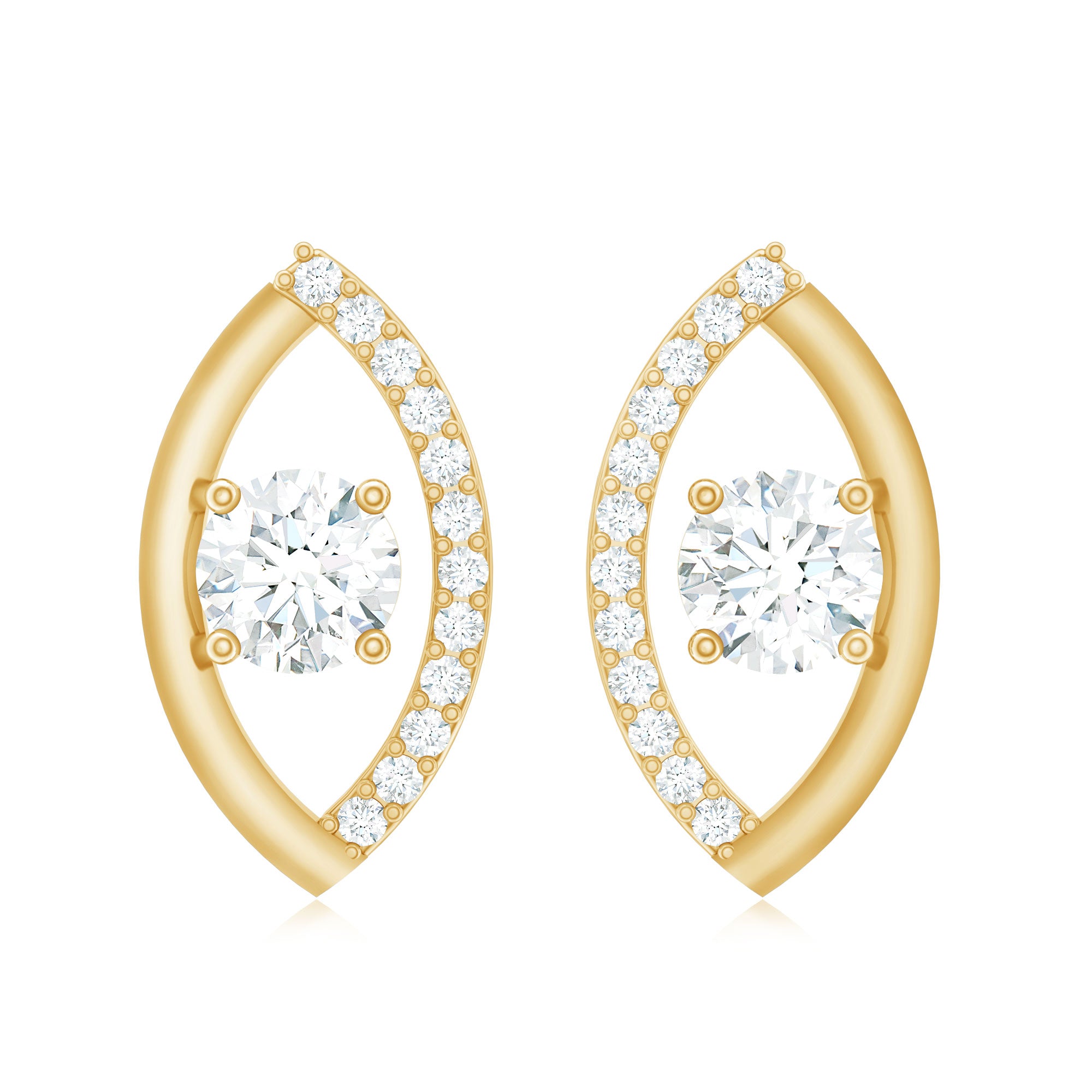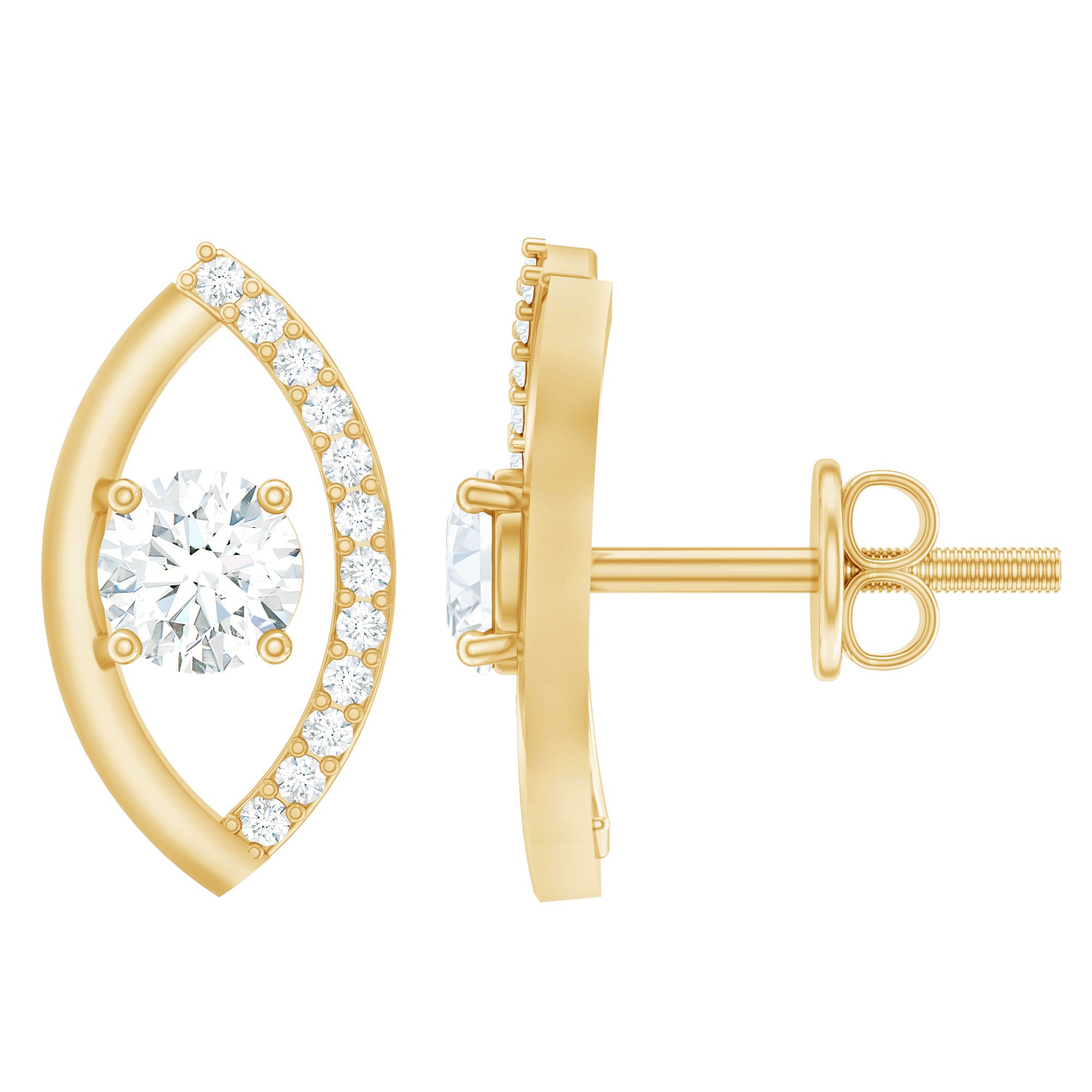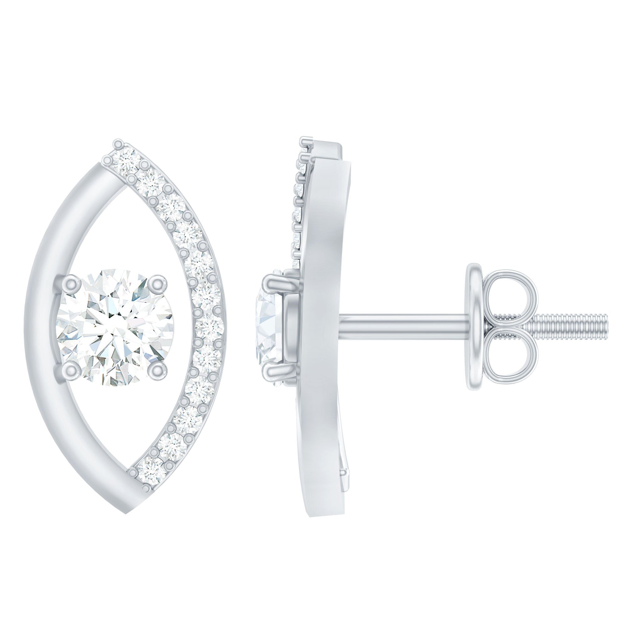 These mesmerizing Minimal Leaf Stud Earrings redefine elegance with nature-inspired grace. Crafted with perfection, each Earring showcases 4 mm Round Shape Lab Grown Diamond gemstone set in Prong Setting with an accent, radiating a subtle sparkle. The Screw Back Closure ensures a secure fit, symbolizing both sophistication and modernity. These (lab created) Diamond Earrings are a testament to Rosec Jewels commitment to ethical luxury, combining sustainable practices with timeless beauty. Our Ef-Vs quality Diamond Stud Earrings come in a signature jewelry box, make your special ones feel happier than ever by presenting them these Diamond Studs as a birthday gift, mothers day gift, anniversary gift, Valentines Day gift.