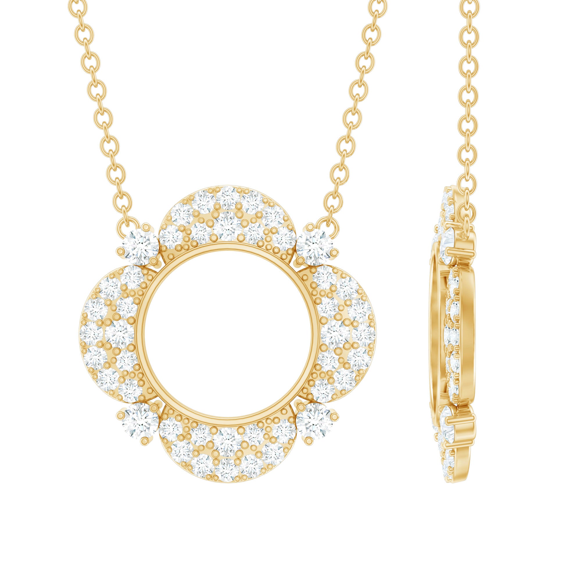 Shine bright and make a statement with this Diamond Eternity Necklace, it features a classic open circle design, symbolizing infinity and endless possibilities. But what makes it stand out is the gorgeous floral-inspired pattern around the edges. Clusters of shimmering round cut diamonds (unnatural) are set in a way that gives the Designer Necklace a petal-like effect. The Diamond Flower Necklace is as versatile as it is stunning, perfect to upgrade any casual and formal look. The gemstones in this necklace are lab grown providing the same sparkle and durability as natural stones but in a more eco-friendly and budget-friendly way.