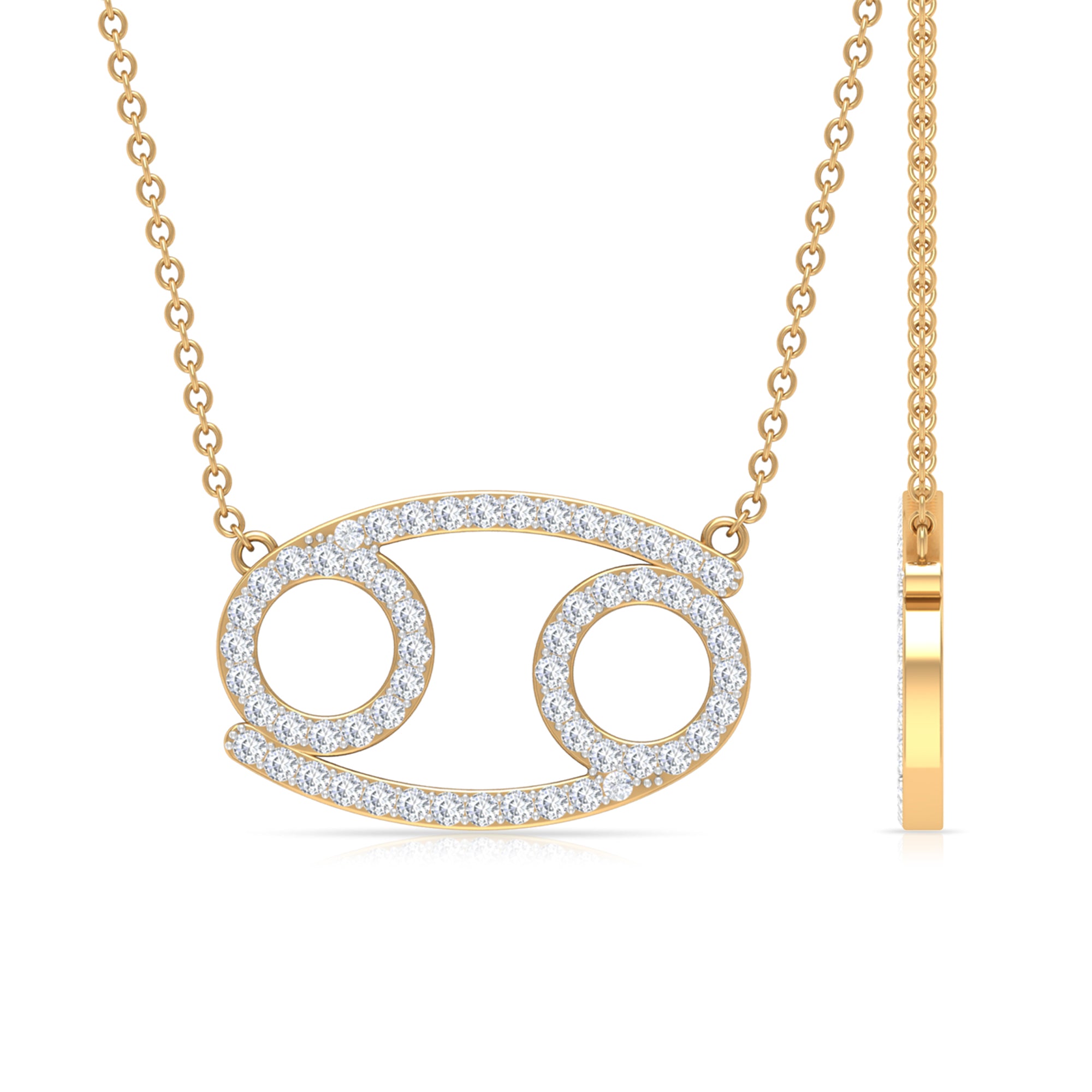 Embrace your zodiac sign with style and significance through our Cancer Pendant Necklace, designed for the intuitive and caring spirit. Show your affection for your beloved with this exquisite Zodiac Cancer Necklace, which features round lab grown diamonds set in pave design, exuding a celestial radiance. Renowned for their nurturing, emotional, and intuitive traits, Cancer represents loyal hearts and quiet warriors. Each diamond on the pendant represents the gentle yet powerful energy of Cancer, transforming this piece into something beyond mere jewelry. Whether you celebrate your birthday or add a celestial sparkle to your everyday look, this Zodiac Diamond Necklace resonates with your true nature. Crafted to be both understated and eye-catching, this necklace is ideal for daily wear or special events. You can even layer it with other birthstone or Cancer jewelry. Perfect as a meaningful gift or a treat for yourself, it serves as a timeless tribute to your astrological identity with elegance and charm.