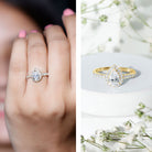 Unique, bold and exquisite this Lab Grown Diamond Ring is a significant symbol of love that beautifully represents a couples journey together. With a symbol of commitment and to start a new chapter of life this eye-catching Diamond Engagement Ring has ideal brilliance, embracing the romance with elegance with a perfect celebration to express your love. Embellished with 5X7mm Pear Shaped Lab Grown Diamond in Prong Setting with the brilliance of Halo. To adorn the shank are the side stones of Round Lab Diamond having timeless appeal. Utterly enchanting this Teardrop Diamond Ring has a graceful radiance with an undeniable charm which is perfect to celebrate your one-of-a-kind love.