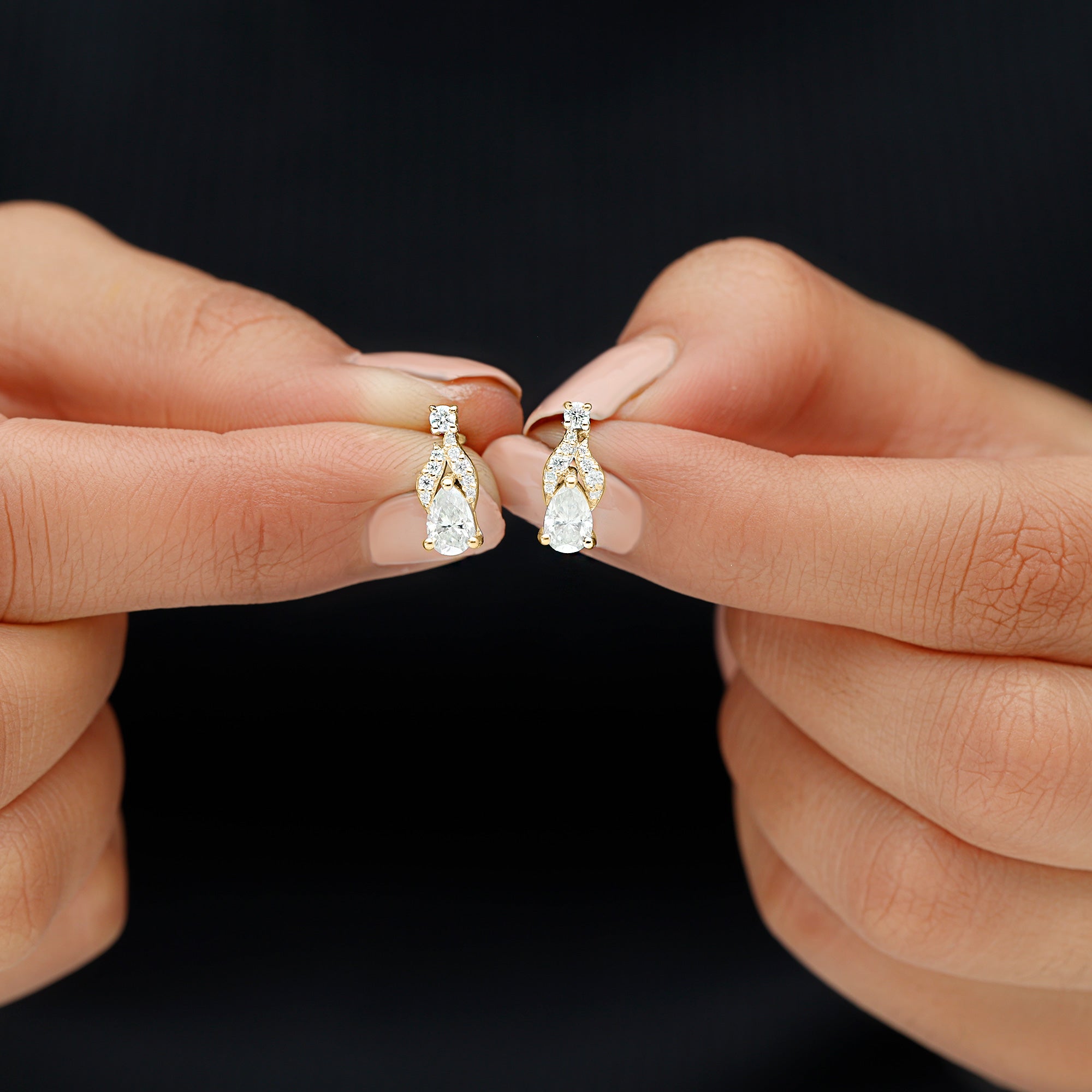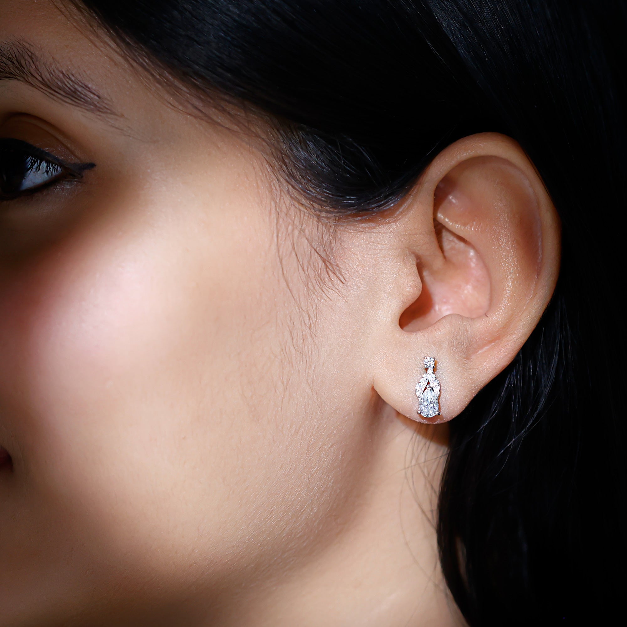 In charming style, these Diamond Stud Earrings can elevate any attire. Our Leaf Earrings are curated with pear and round-shaped certified diamond gemstones of EF-VS Quality set in prong setting. The diamond, also known as the April birthstone, symbolizes clarity, loyalty, and everlasting love, making these Screw Back Earrings both meaningful and beautiful. Designed with simplicity and elegance, these Nature Inspired Earrings are budget-friendly, proving that timeless beauty doesnt have to come at a high price. All the gemstones are lab grown in these Diamond Earrings making them affordable and environmentally friendly.