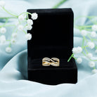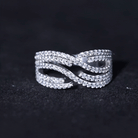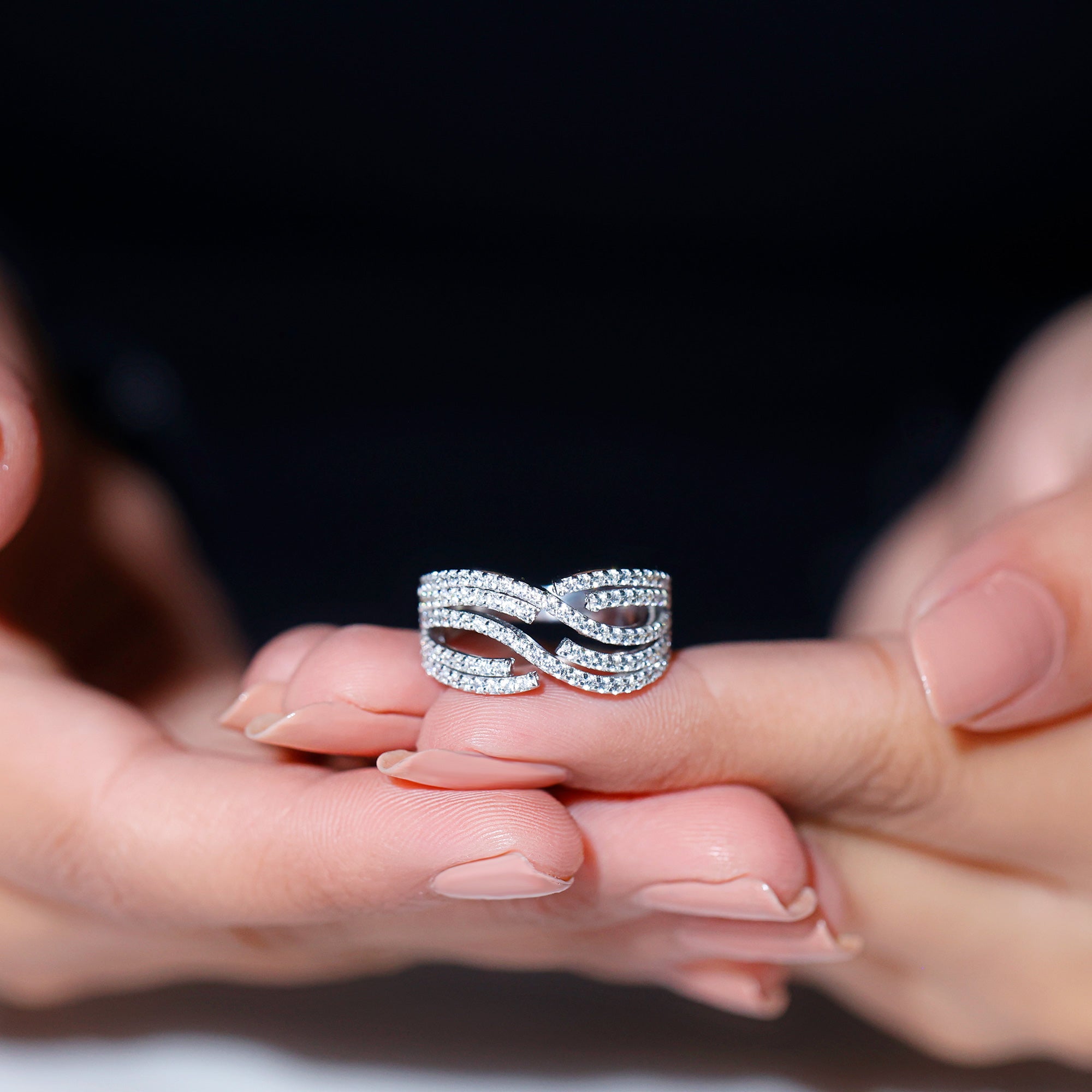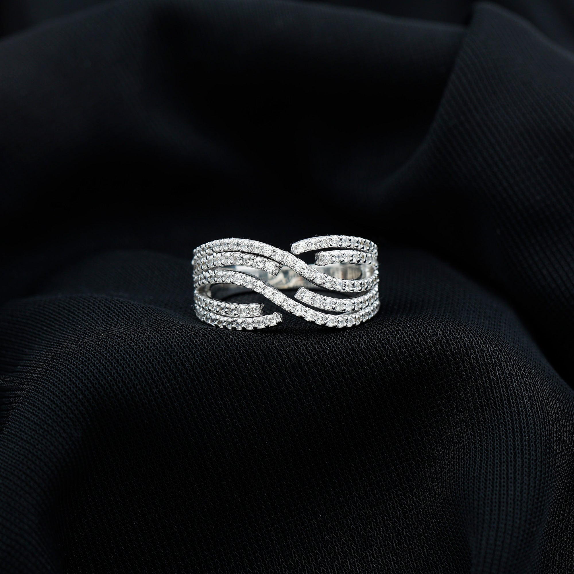 Celebrate love and romance with this breathtaking Infinity Wedding Band, ideal for a bride on her special day. This Designer Band Ring is embellished with round shaped pave set diamonds (lab grown) on multiple curved rows, together they create a unique infinity pattern. The carefully designed space in between the rows adds a contemporary touch while ensuring a lightweight and comfortable fit. Whether worn as a statement Diamond Wedding Ring, an Anniversary Ring or a luxurious fashion piece, this Infinity Ring is perfect for those who love unique designs with a dazzling impact.