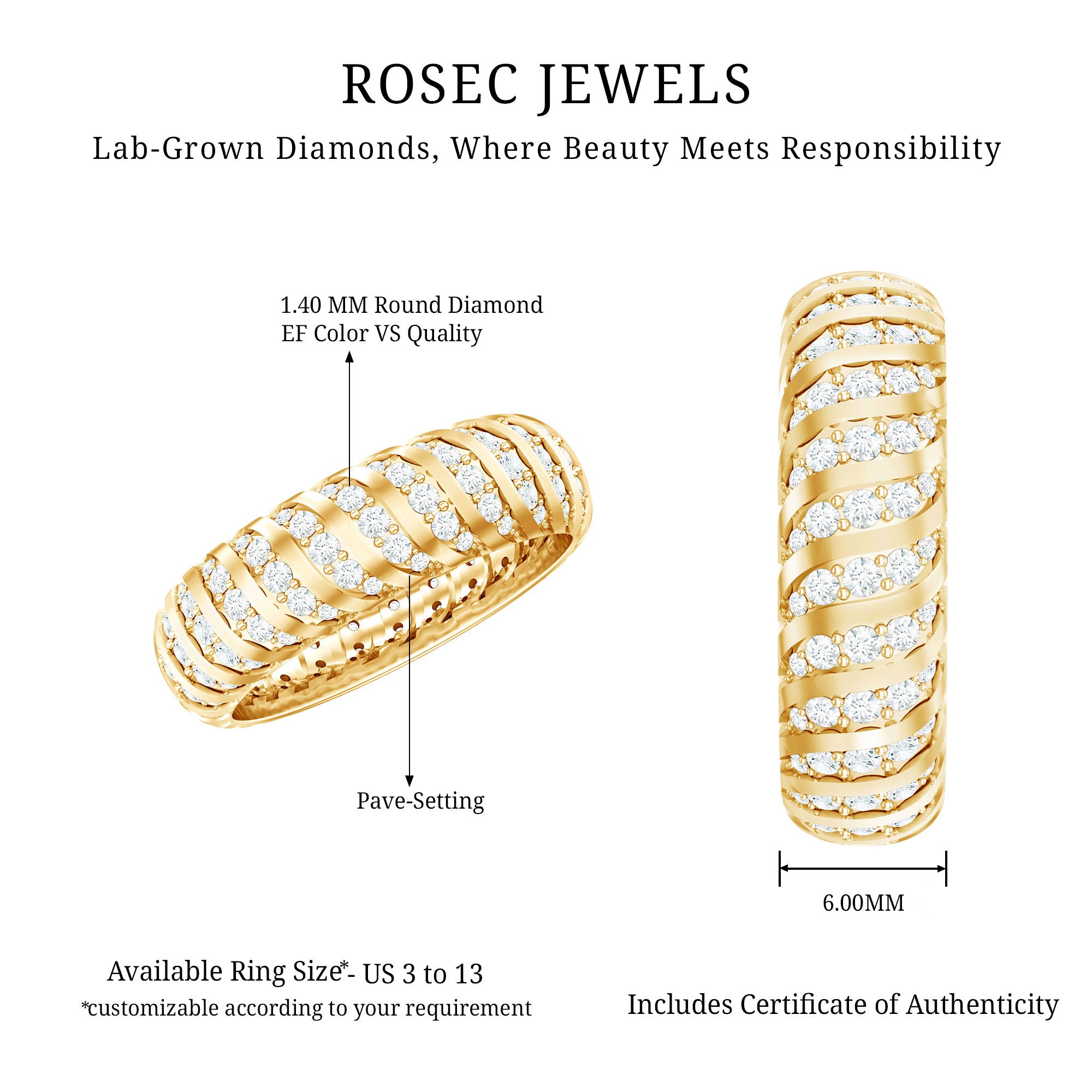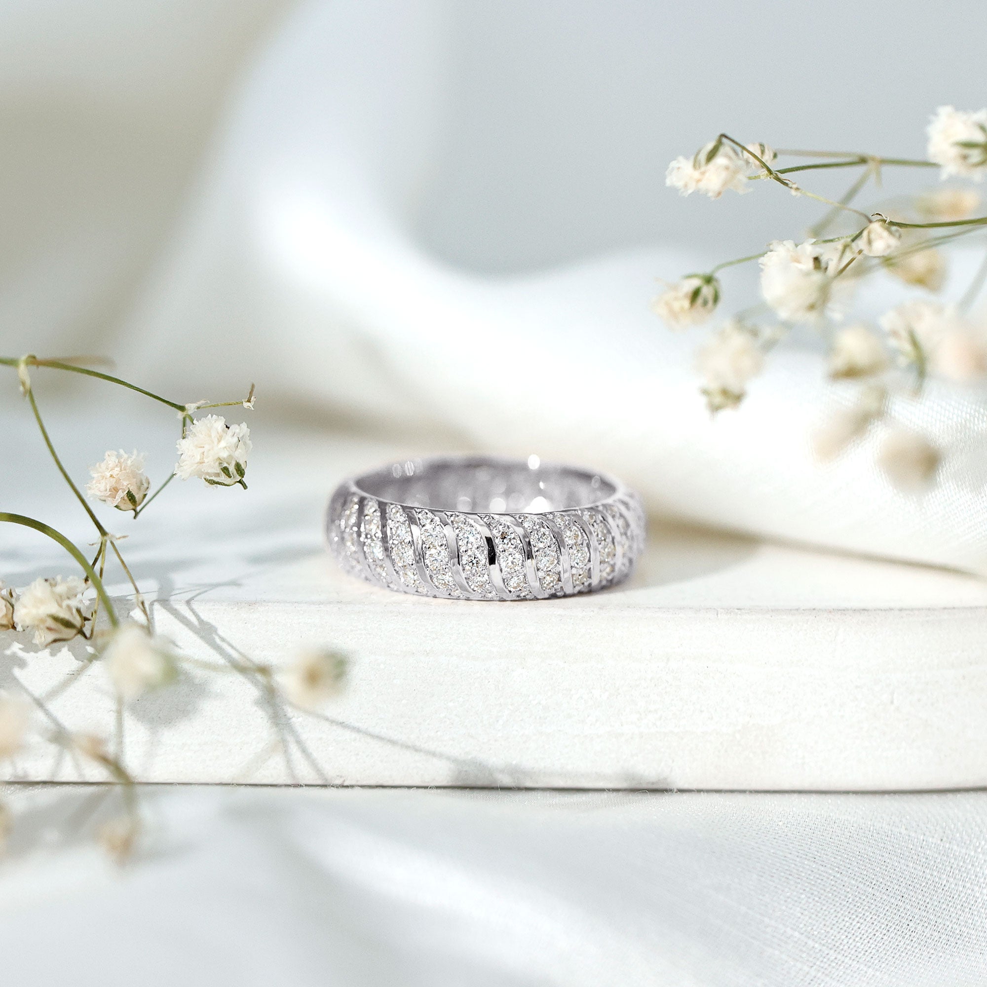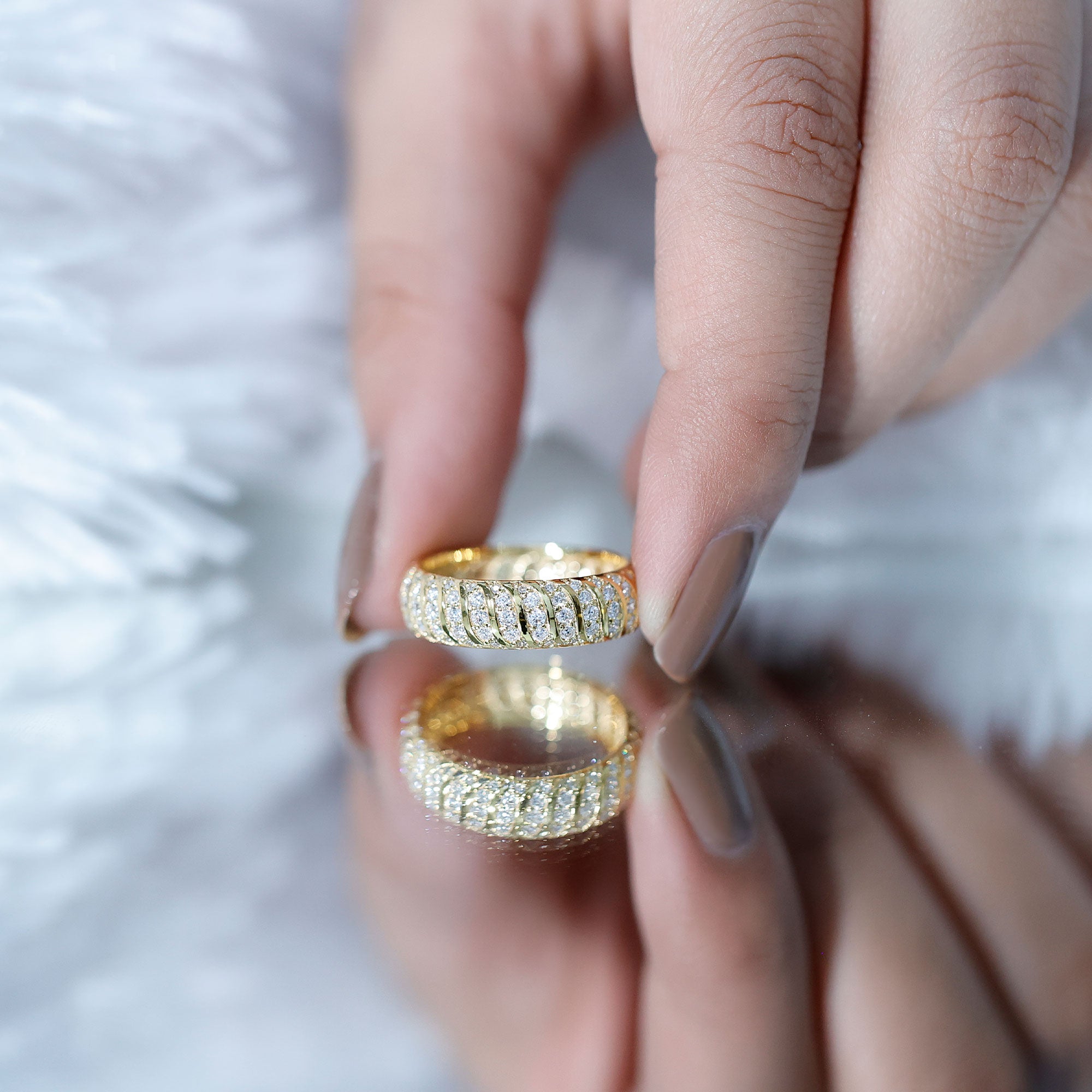 This Lab Grown Diamond Wedding Band is perfect for anyone looking for something classic, durable, and meaningful. Featuring EF-VS Quality round lab grown diamonds arranged in a wavy design, it shines brightly without being overly flashy. The flowing wavy pattern is ideal for daily wear and those special moments that truly matter. Crafted with care and precision, this Statement Band is comfortable to wear and built to last a lifetime, just like your commitment. The Lab Created Diamond stones make this Thick Wedding Band a smart and responsible choice for modern women. It is not just about the look, it is about wearing something that carries real significance. It comes in a signature jewelry box, making it perfect for gifting or safekeeping. Available in US ring sizes 3 to 13, this Diamond Band Ring guarantees a perfect fit for every woman. Whether you are tying the knot or upgrading your band, this Lab Created Wedding Band is designed to symbolize your journey, strength, and love.