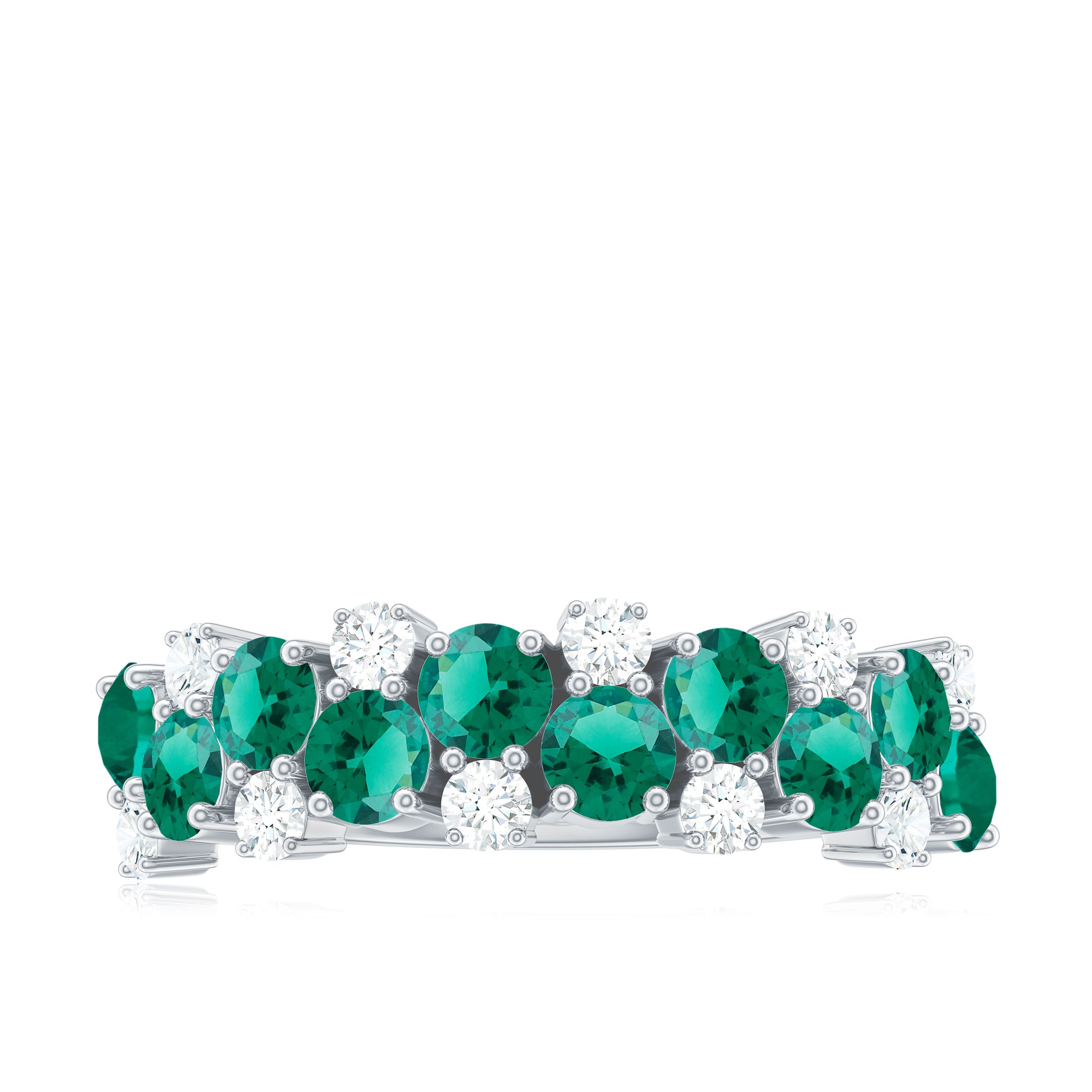 Certified Lab Grown Emerald Cluster Wedding Band with Moissanite