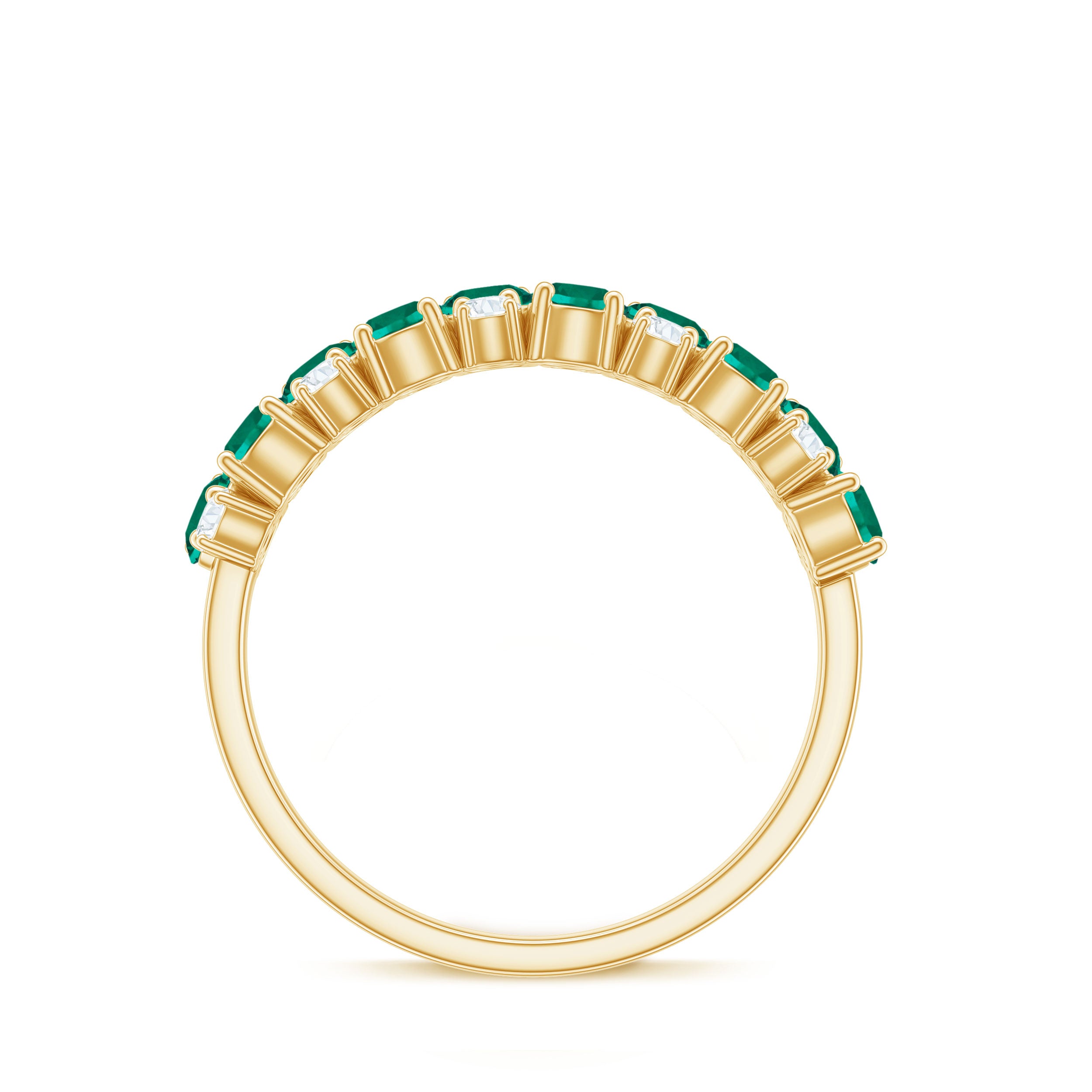 Celebrate forever with sparkling elegance and the timeless symbolism of this Half Eternity Wedding Band, a stunning expression of love, commitment and sustainable luxury. This elegant Cluster Wedding Band features a beautiful cluster of Round Shape Lab Created Emerald and Moissanite stones. The AAAA Quality Lab Emerald stones are thoughtfully arranged in a half eternity design, symbolizing continuous love and togetherness. Complementing the lush green of the Lab Emerald are dazzling Moissanite stones, carefully set alongside to amplify brilliance and add a touch of radiant sparkle. The combination of the rich green Lab Emerald and the shimmering Moissanite creates a harmonious balance of color and light, making this Lab Emerald Wedding Band a truly eye-catching piece. Available in a variety of US standard ring sizes and presented in an elegant jewelry box, this Lab Grown Emerald Ring is ready to mark your most cherished moments with grace, brilliance and a meaningful promise of forever. Crafted with perfection, this Wedding Anniversary Band offers beauty, perfect for daily wear or special occasions. Its design stands as a timeless symbol of unity, ideal for weddings, anniversaries or meaningful life milestones.