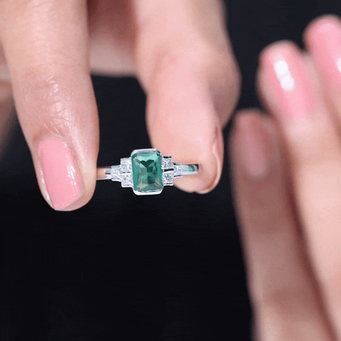 Certified Lab Grown Emerald Diamond Art Deco Engagement Ring