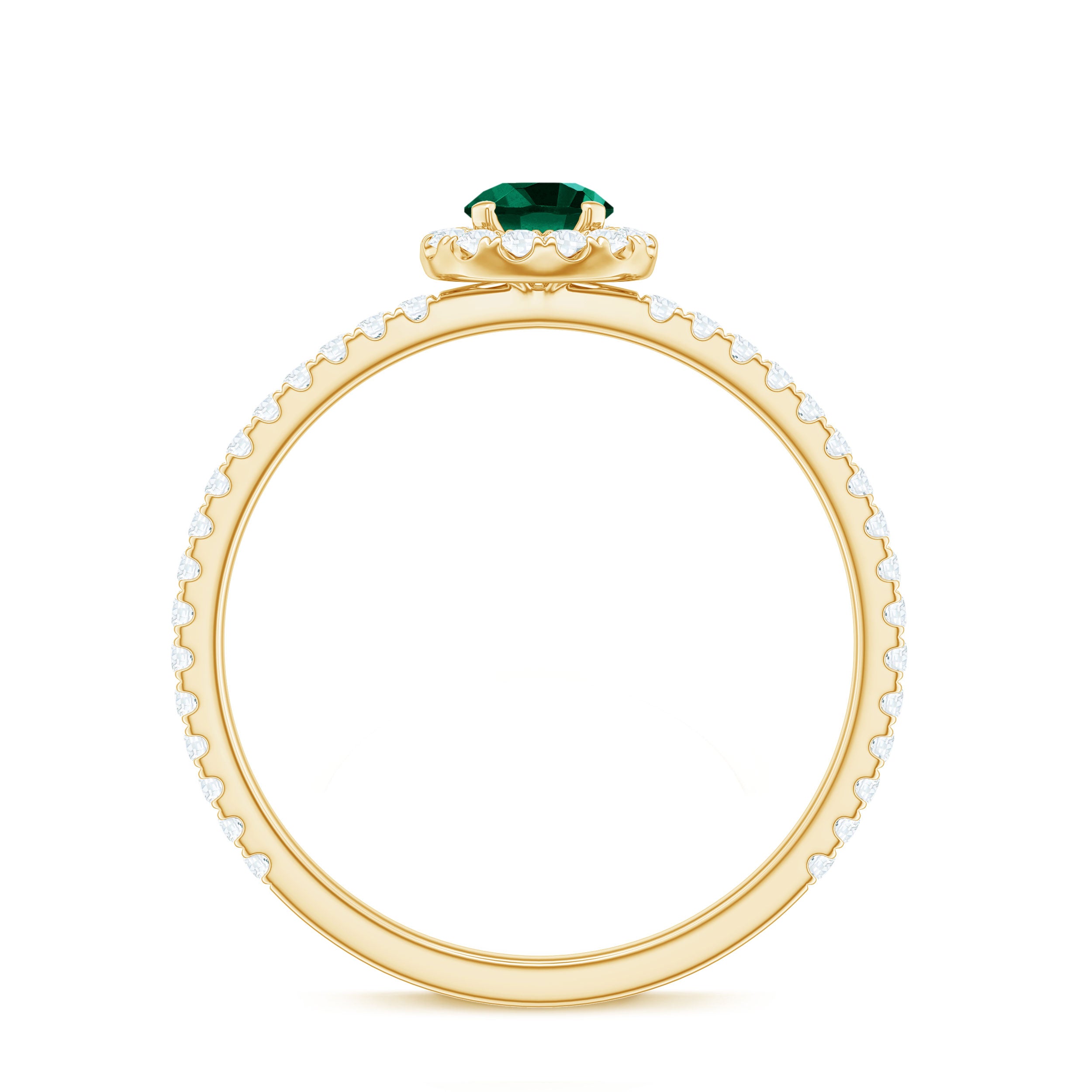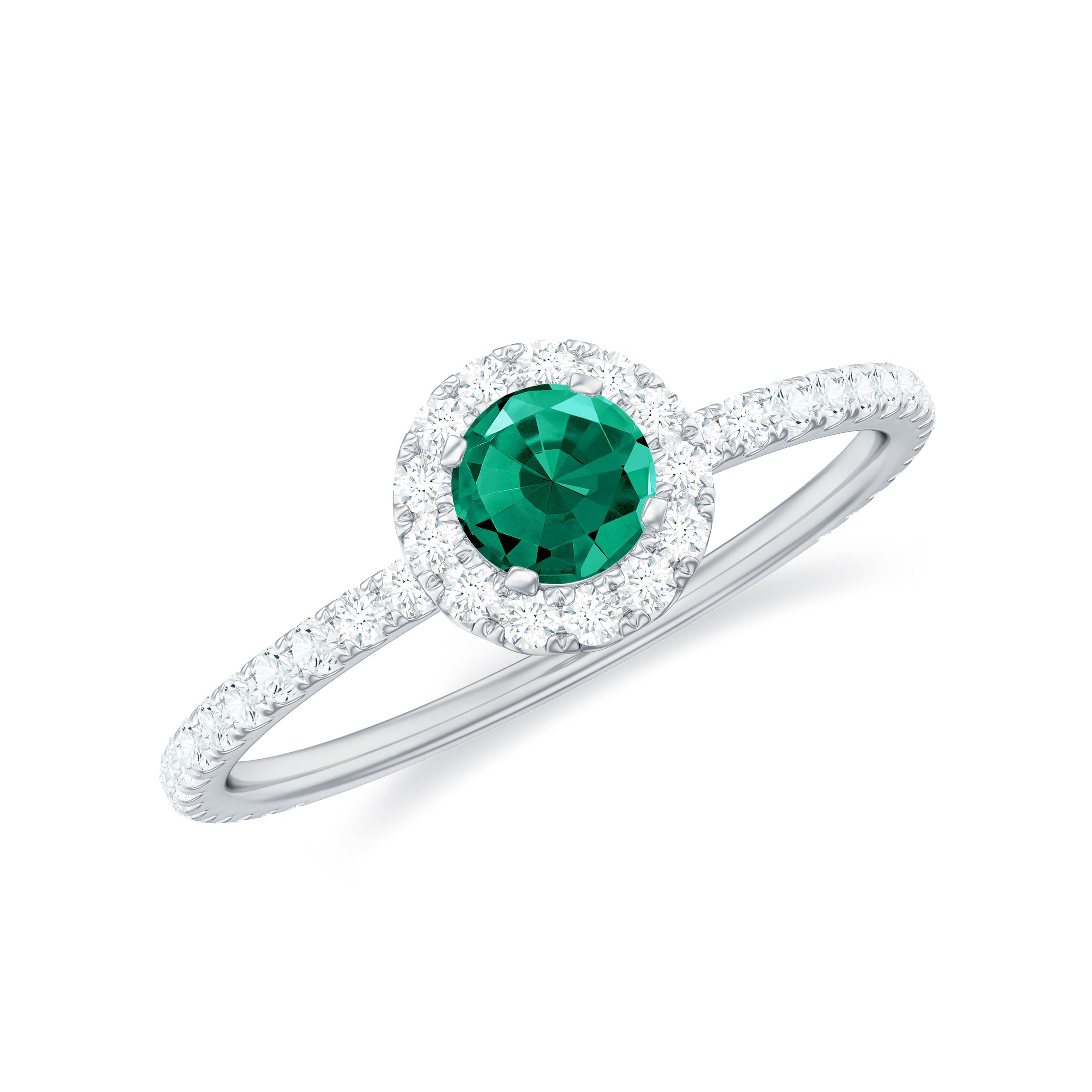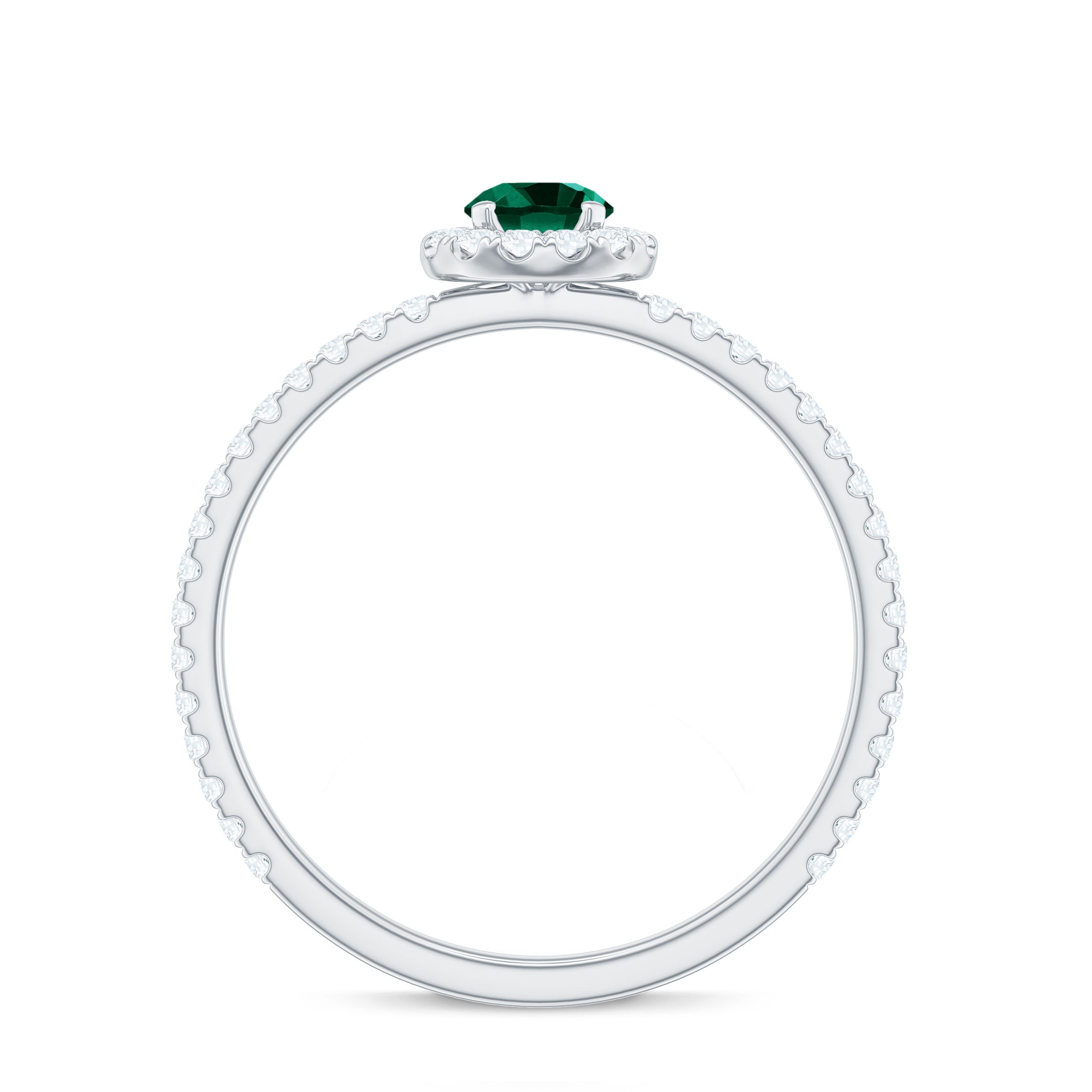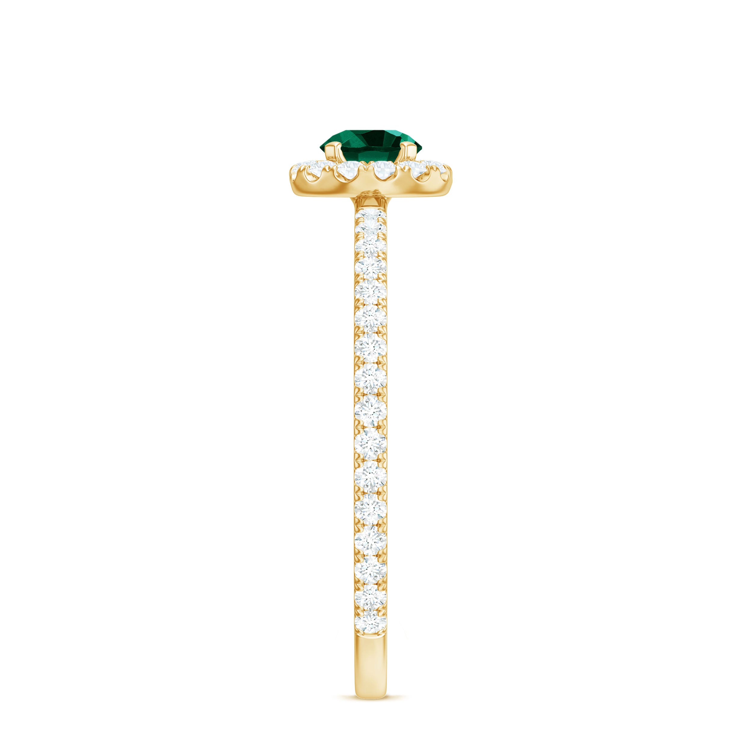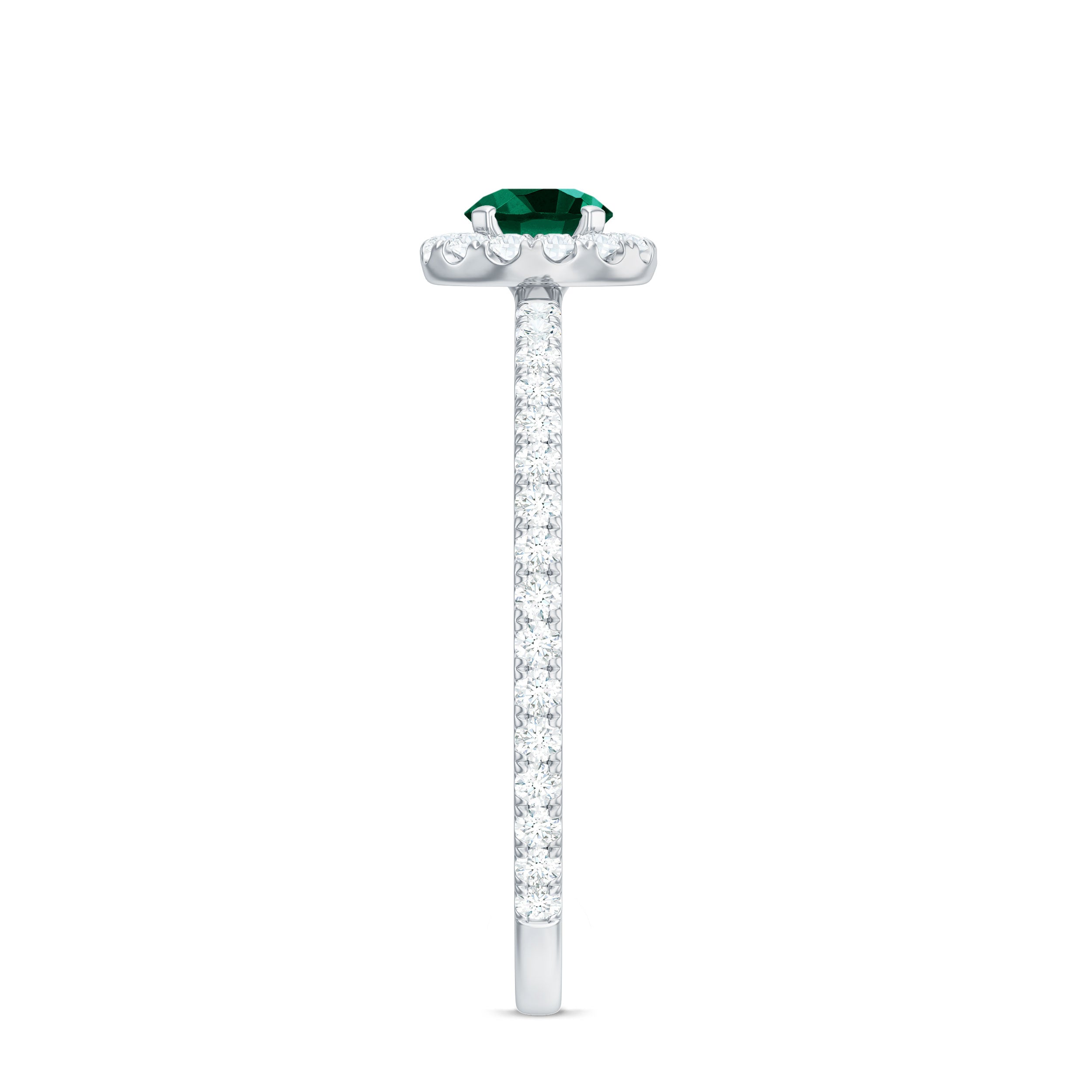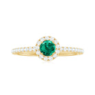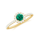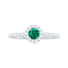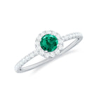 Step into a world where elegance meets meaning with this Lab Grown Emerald Engagement Ring. The vivid green 6 mm Round Shape Lab Grown Emerald at the center symbolizes fresh beginnings and enduring love. Surrounding the center stone is a delicate halo of sparkling Diamond that creates a brilliant frame, amplifying the color of the Lab Emerald and brilliance in a way that catches light from every direction. The band is subtly adorned with tiny Diamond side stones, that adds gentle sparkle without overwhelming the design, making this Lab Emerald Halo Engagement Ring perfect for someone who appreciates understated luxury. Inspired by modern minimalism with a touch of classic grace, this Lab Emerald Diamond Engagement Ring balances bold color and refined details. Whether it is a promise, proposal or special milestone, this Lab Created Emerald Ring is designed to celebrate individuality and timeless affection. The Lab Grown Emerald represents beauty and a conscious choice for sustainability and lasting quality. Arriving in a sleek Jewelry Box, this Engagement Ring with Emerald is ready to be gifted or treasured, a true reflection of your unique love story, full of color, brilliance and endless meaning.