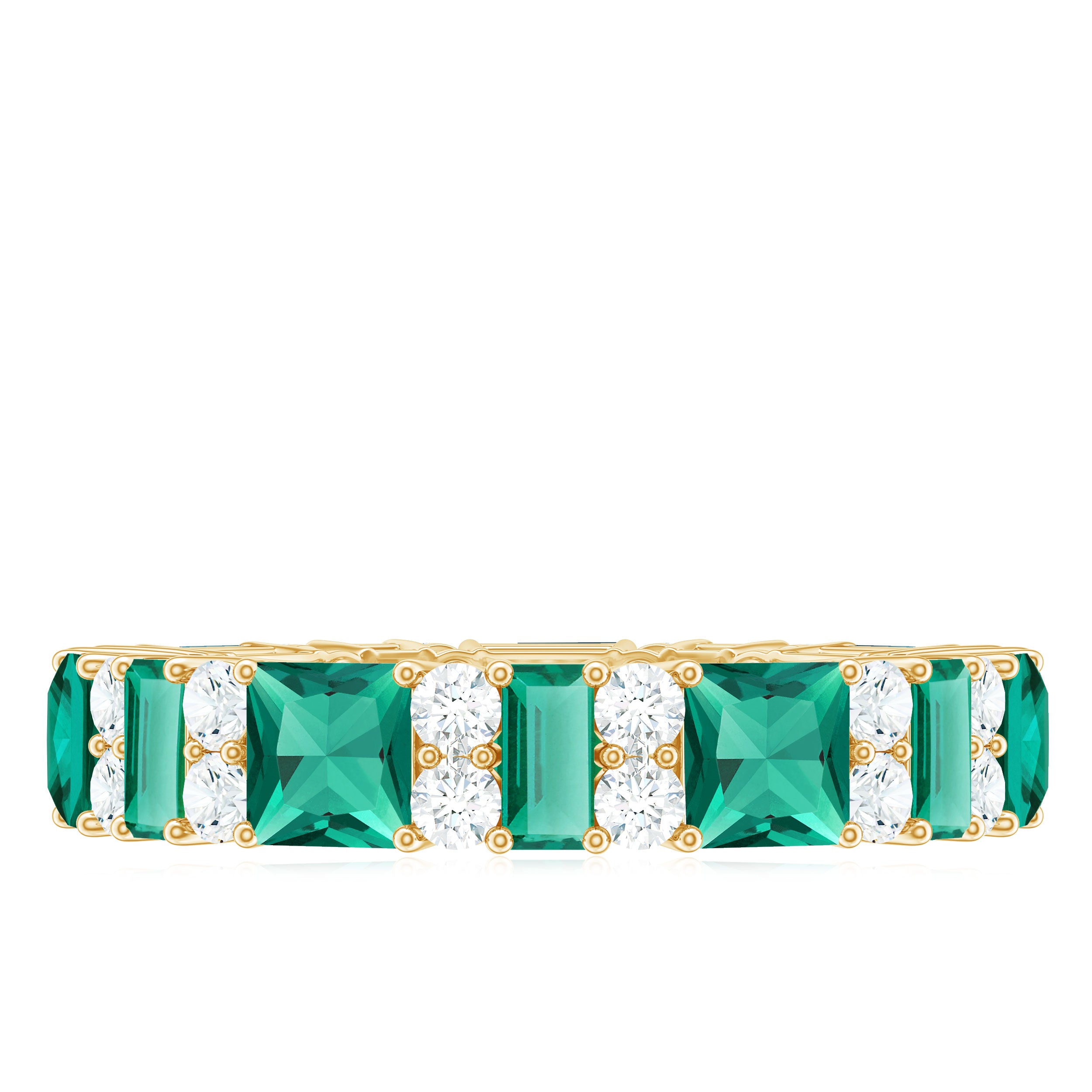 Certified Lab Grown Emerald Eternity Wedding Band with Diamond