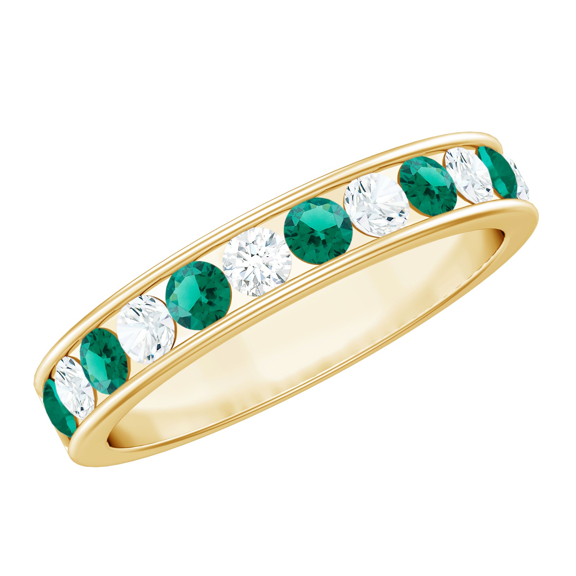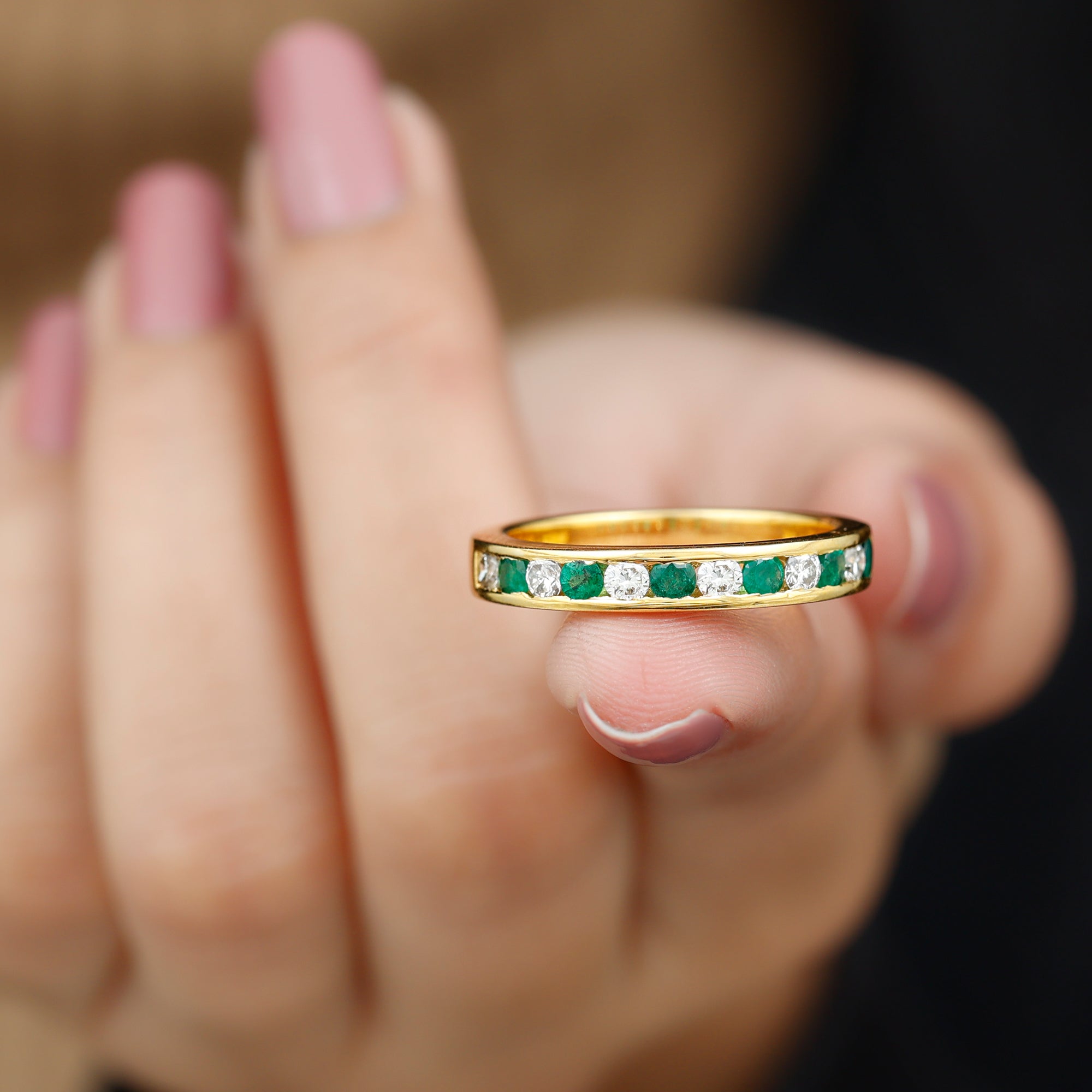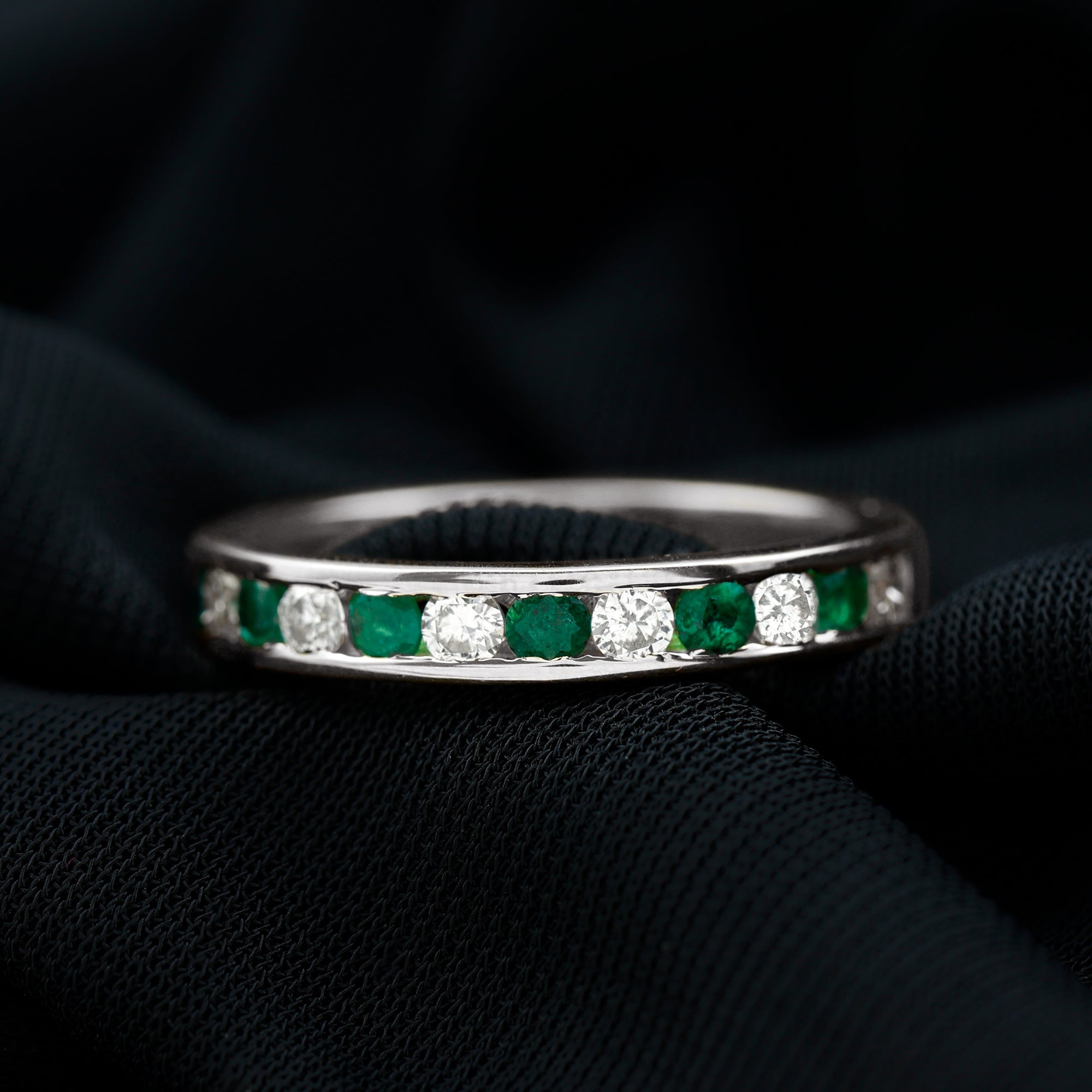 Certified Lab Grown Emerald Half Eternity Anniversary Band in Channel Setting
