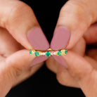 Certified Lab Grown Emerald Half Eternity Anniversary Ring with Diamond