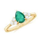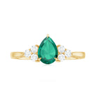 Certified Lab Grown Emerald Pear Shaped Engagement Ring with Diamond Trio