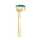Make a bold and elegant statement with this Pear Shaped Engagement Ring. At the center, a stunning 5X7 mm Pear Shape Lab Created Emerald in Claw Setting takes the spotlight, showing off its deep green hue and unique shape that beautifully combines modern flair with timeless elegance. On each side of the AAAA Quality Lab Emerald, a trio of sparkling HI-SI Diamond stones adds extra brilliance, creating a balanced and eye-catching design. The arrangement of the shimmering Diamond stones draws attention to the center stone, making it pop even more. This Teardrop Engagement Ring is perfect for someone who loves a bit of drama with a lot of meaning. The pear shape symbolizes tears of joy and fresh starts, making this Lab Emerald Diamond Engagement Ring an ideal choice for a love that feels deeply personal and full of emotion. Whether you are planning a surprise proposal or choosing it together, this Pear Shape Emerald Ring (Lab Grown) is a beautiful mix of modern luxury and meaningful design.