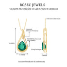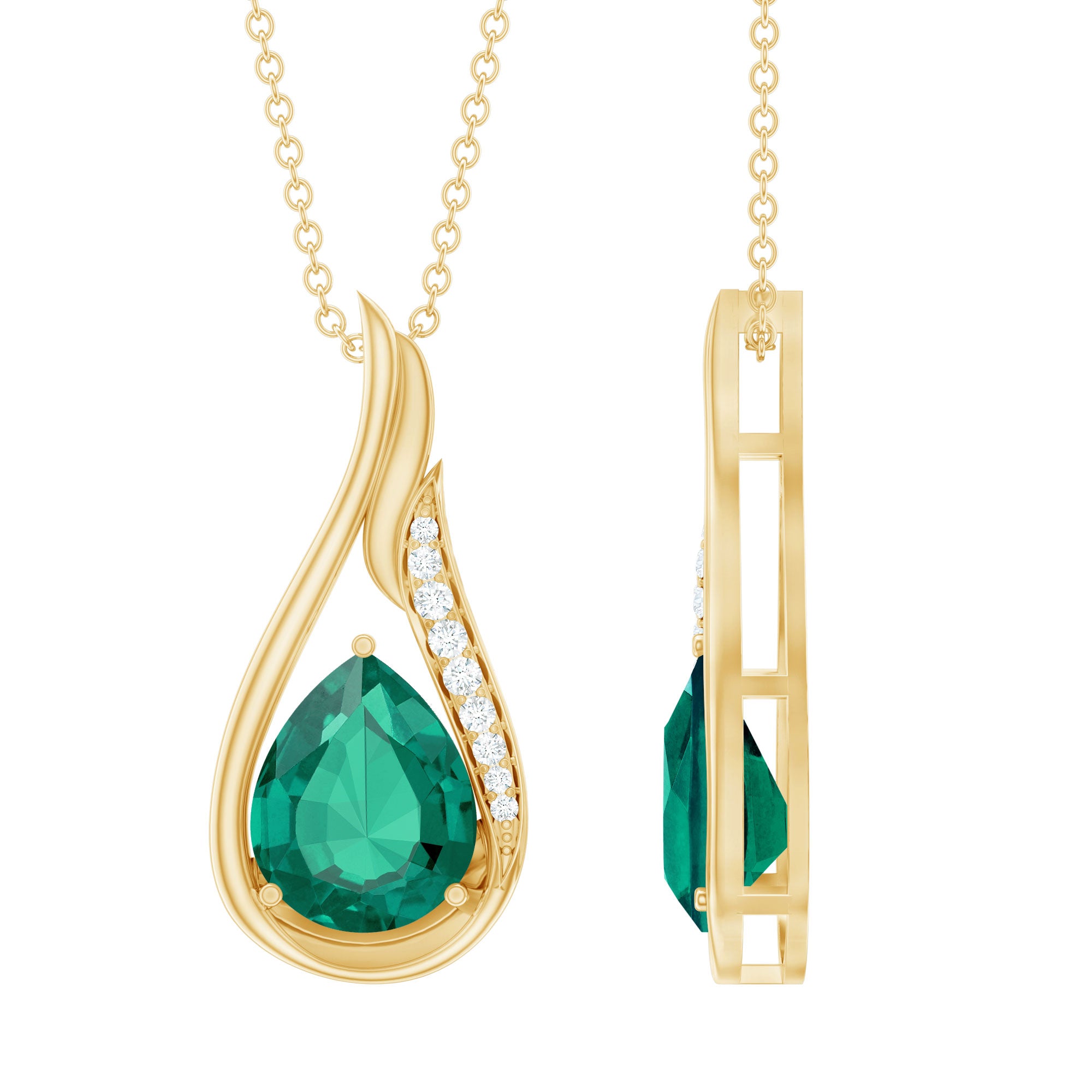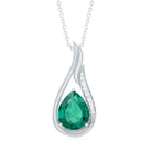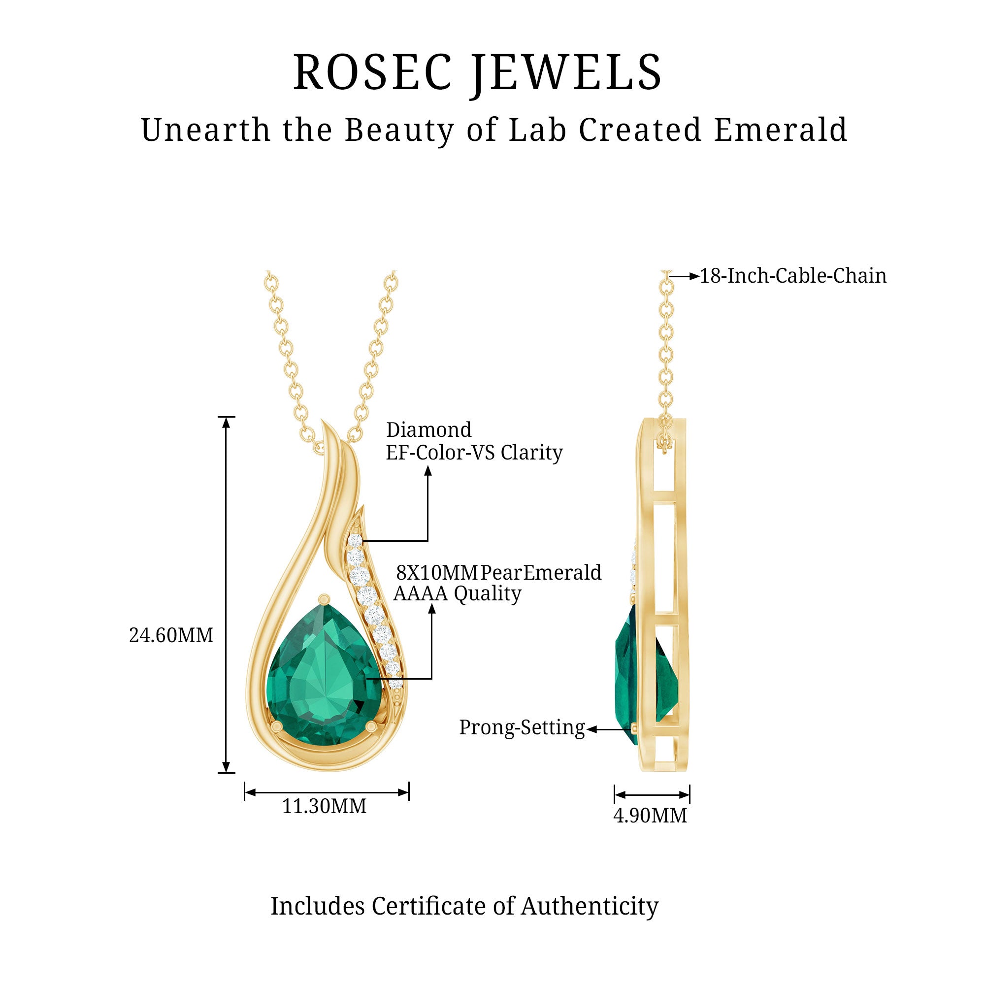 Dangle and sway with the timeless elegance of this Teardrop Pendant Necklace. This exquisite piece features a 8x10 mm Pear Shape Emerald set as a centerpiece in Prong Setting, radiating vibrant green hues. The sparkles of Aaaa Quality Emerald and Ef-Vs Quality Diamond add a touch of sophistication. Impeccably designed by Rosec Jewels, this Emerald Pendant Necklace (Synthetic) reflects our commitment to sustainable luxury.