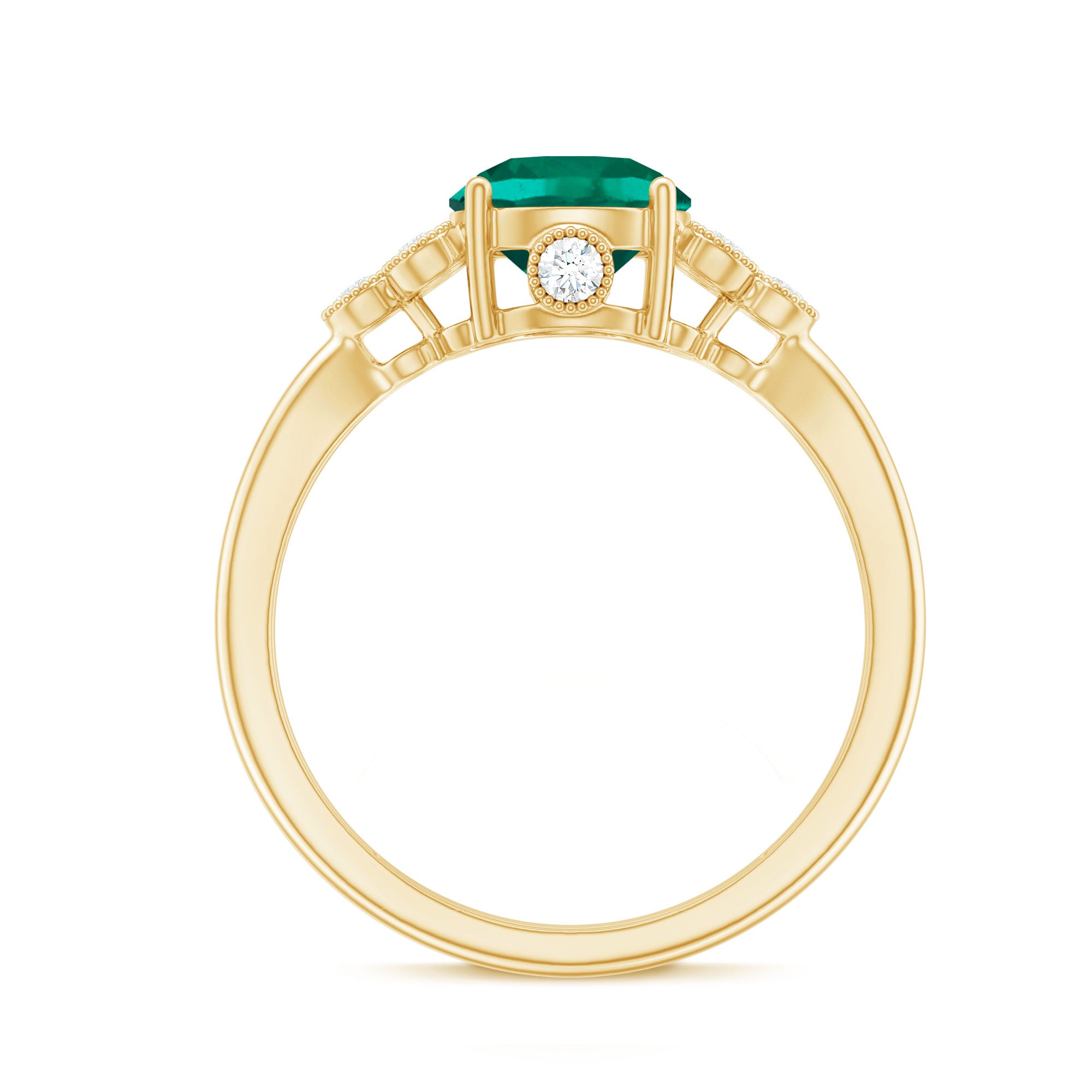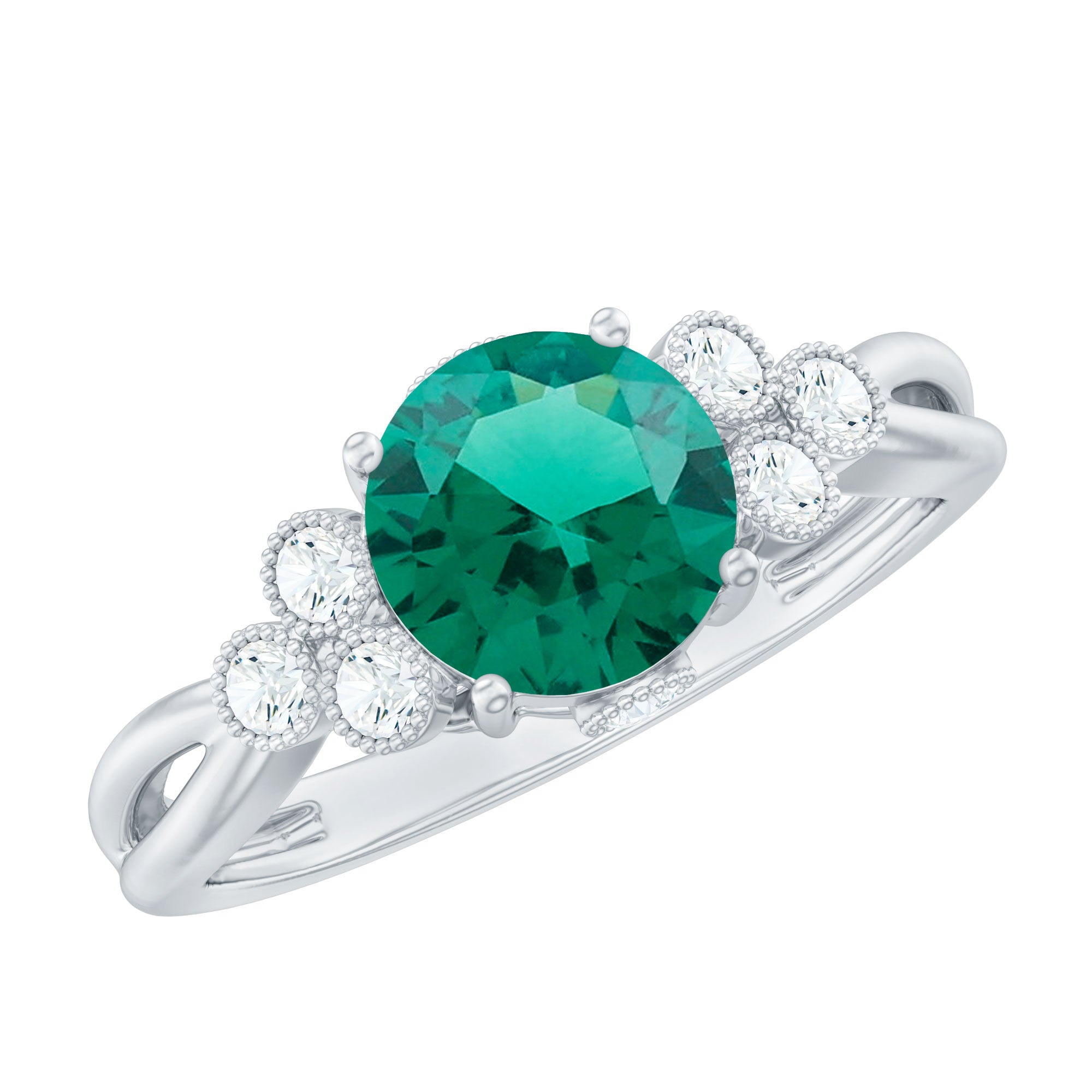 Dazzle up your love story with this Designer Engagement Ring showcasing a 8 mm Round Shape Lab Created Emerald that takes center stage, complemented by a Trio of Lab Grown Diamond gemstones in the Emerald Diamond Ring set on either side with Beaded Embellishment. Elevate your commitment with a symbol as timeless as your love that sparkle with Aaaa Quality Emerald and Ef-Vs Quality Diamonds. Trust Rosec Jewels for unparalleled craftsmanship and ethical sourcing, making every moment sparkle with this Classic Ring.
