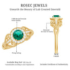 Certified Lab Grown Emerald Vintage Looking Engagement Ring with Diamond