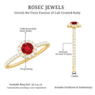 Let your love shine in every little detail with this Ruby and Diamond Ring that is made to turn heads. This Ruby Engagement Ring is designed for those who want something meaningful and full of beauty. It is curated with a 5 MM round lab created ruby, full of deep color and warmth. It is held in a secure prong setting and surrounded by a halo of round diamonds, giving the Lab Created Ruby Ring a bright and radiant look that catches the light from all sides. The diamonds continue down the band in a delicate line, adding extra shine. This Halo Engagement Ring blends timeless design with a touch of modern charm. It is perfect for someone who loves classic styles but wants a little extra sparkle and personality. Whether you are getting engaged or marking a love that is special, this Ruby and Diamond Engagement Ring is a beautiful way to show how much she means to you. It is available in multiple sizes and comes ready to gift in a thoughtfully designed jewelry box. Full of color, light, and meaning, this ring is a lasting reminder of love that stands strong and shines bright, day after day.