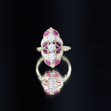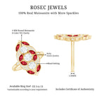 As a dazzling Lab Grown Ruby Ring is a spectacular fusion of modern elegance and vibrant luxury. The striking combination of Lab Grown Ruby and Moissanite creates a striking statement. Its art deco style has a rich red hue of AAAA Quality Lab Grown Ruby and D-VS1 Quality Moissanite symbolizing passion and love. Embraced by an intricate halo of sparkling Moissanite gemstones are renowned for their incredible brilliance and fire, creates a captivating frame that enhances the Rubys radiant beauty. Crafted with precision to detail this Vintage Art Deco Ring makes a bold statement and also reflects a commitment. Its cocktail design adds playful yet sophisticated details making it perfect for the bride who dares to be different and desires a ring as unique as her love story. Celebrate your forever with this exquisite Cocktail Engagement Ring as a striking piece that embodies individuality and timeless romance, destined to be cherished for generations to come.