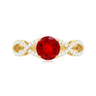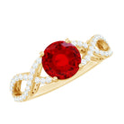 Begin a new chapter of love with this stunning Lab Created Ruby Ring, a perfect mix of elegance and meaning. At its center sparkles an 8 MM round cut lab grown ruby, securely held in prong setting that highlights its red color and natural brilliance. The ruby symbolizes love, strength, and passion, making it a beautiful choice for an engagement. The Ruby Solitaire Ring features a graceful crossover shank, representing two paths joining as one, just like two hearts coming together. This intertwined design gives the Ruby Engagement Ring a romantic and symbolic touch, while delicate moissanite stones along the band add subtle sparkle and refinement. Each stone catches the light beautifully, enhancing the glow of AAAA quality lab ruby without taking away from its charm. Crafted with precision and care, this Criss Cross Engagement Ring combines timeless beauty with a modern design. Perfect for engagements or meaningful gifts, this Ruby and Moissanite Ring captures the essence of connection and everlasting love.