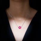 Certified Lab Grown Ruby Flower Necklace in Silver