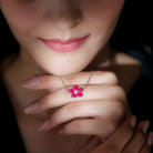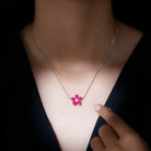 Inspired by the charm of nature, this Flower Necklace brings a vibrant, feminine glow to any look. At the center of the elegant floral design rests a cluster of dainty Zircon stones, adding a soft sparkle that enhances the brilliance of the surrounding petals. Each petal is adorned with 2 mm Princess Cut Lab Created Ruby stones, giving the flower a rich, radiant red hue that instantly draws attention. The 925 Sterling Silver offers a sleek, modern touch, while the delicate chain allows the pendant to sit beautifully on the neckline. Whether you are dressing up for cocktail parties, romantic dinners or simply want to add a bold pop of color to your outfit, this Lab Grown Ruby Necklace offers just the right balance of sophistication and charm. It pairs effortlessly with classic dresses or even minimalist styles that let the pendant shine as the centerpiece. Delivered with an elegant jewelry box, this Lab Ruby Pendant Necklace also makes a thoughtful and stylish gift for anyone who loves unique, nature-inspired designs.