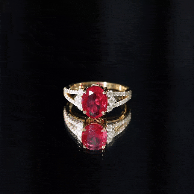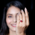 Certified Lab Grown Ruby Oval Engagement Ring With Moissanite
