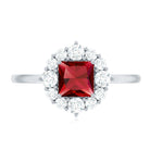 Certified Lab Grown Ruby Princess Cut Engagement Ring with Diamond Halo