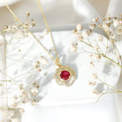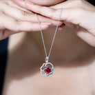 Certified Lab Grown Ruby Rose Pendant Necklace with Diamond Accent