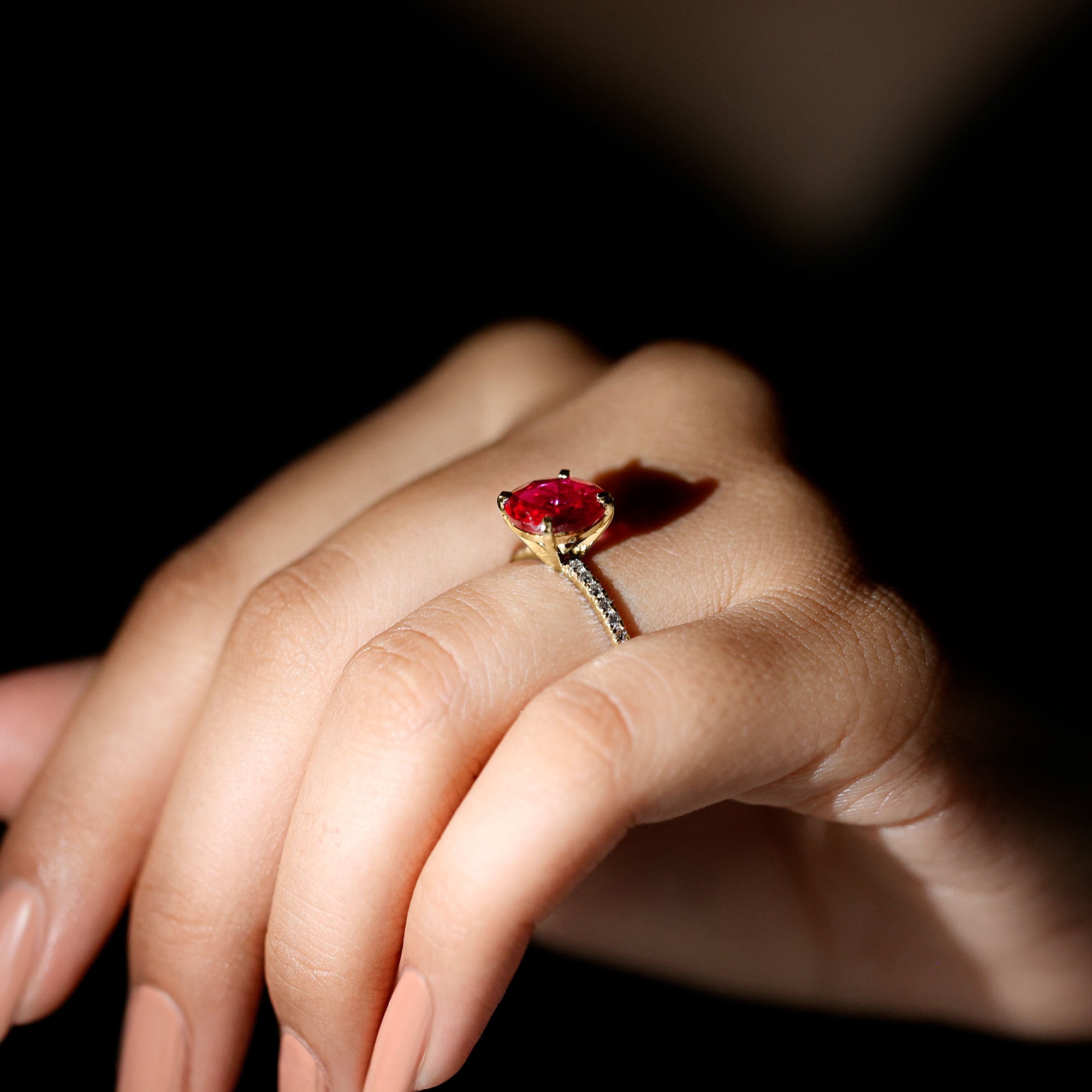 Certified Lab Grown Ruby Solitaire Engagement Ring with Diamond Side Stones
