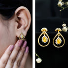Certified Lab Grown Yellow Sapphire Diamond Teardrop Earrings with Screw Back