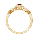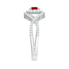 Certified Lab Ruby and Diamond Crossover Engagement Ring with Halo
