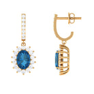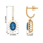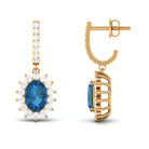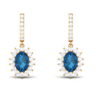 Jewelry has the power to be the one little thing that makes you feel unique. These J Hoop Drop Earrings are embellished with Oval Cut London Blue Topaz and Round Shape Diamond Halo in Prong Setting. These London Blue Topaz Earrings are available in various metal options. Tell your story by wearing these Beautiful Sunburst Earrings.