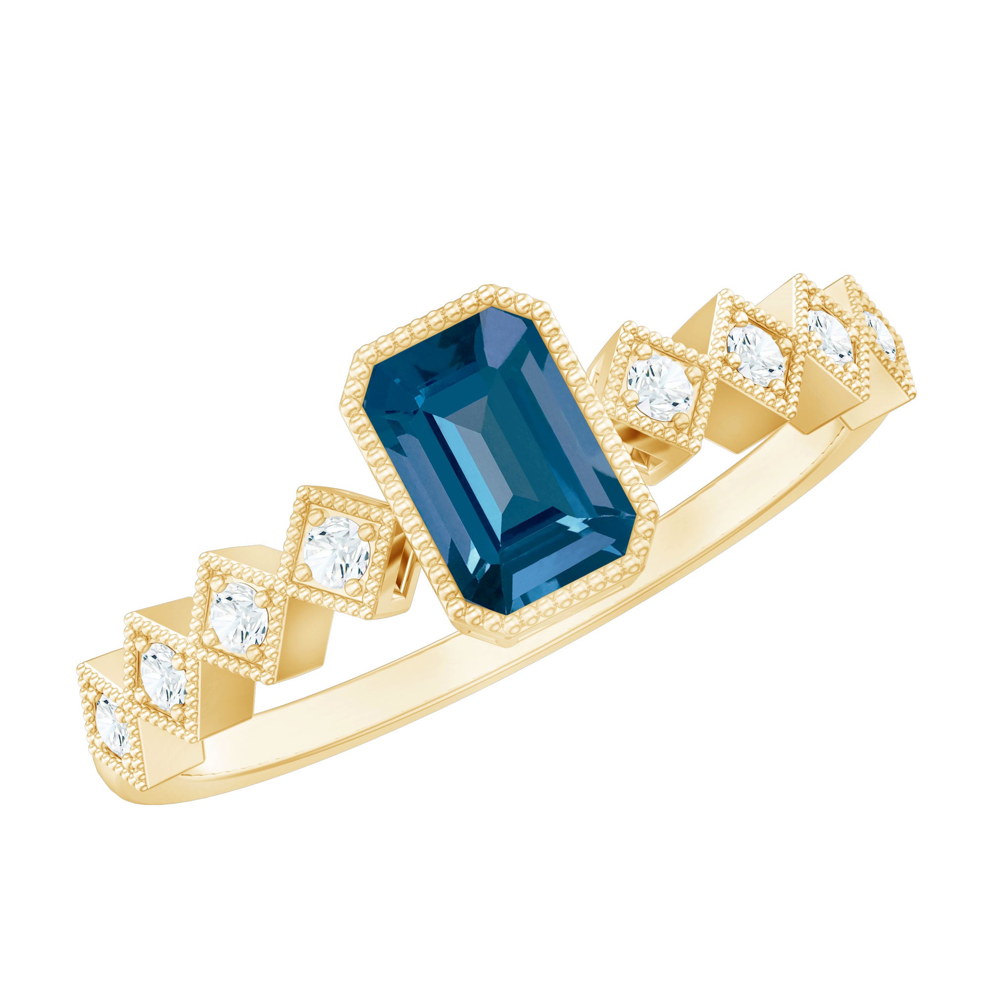 4X6mm Emerald Cut London Blue Topaz Engagement Ring with Beaded Details