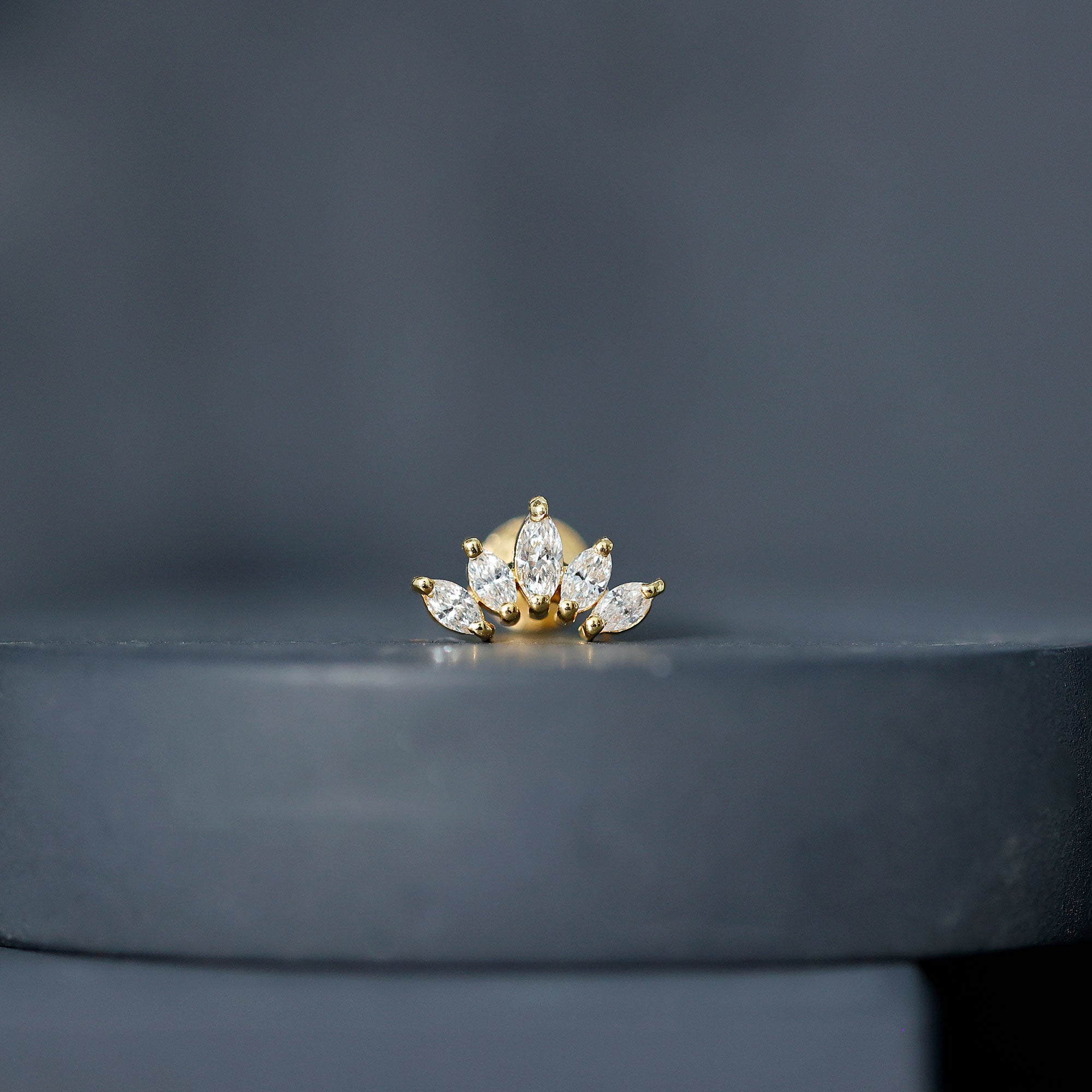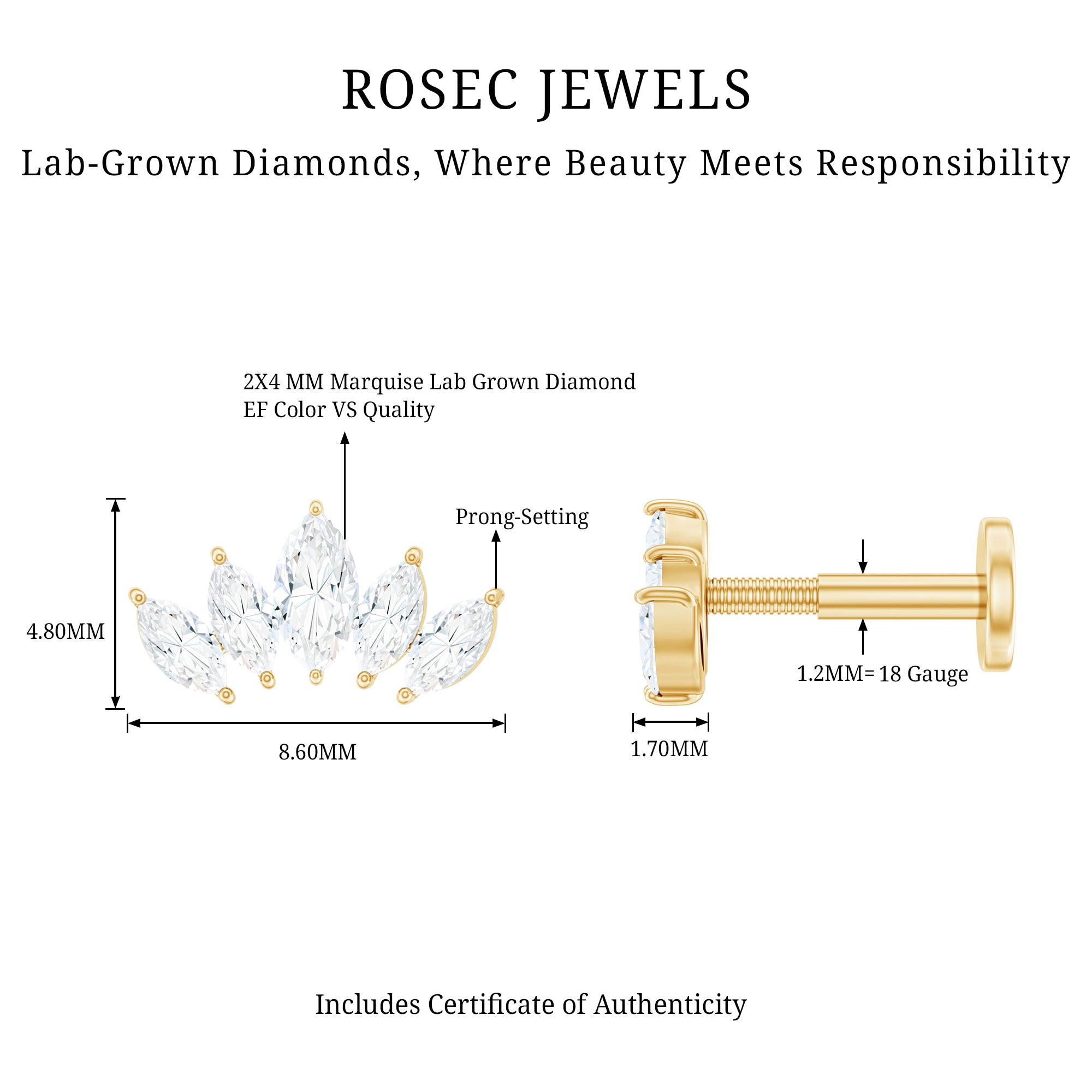 Diamond piercing jewelry is trending everywhere! This Diamond Helix Stud is a perfect piece to enhance your collection. Showcasing five Marquise Shape Diamonds assembled as leaf design secured by Prong Setting, adding a touch of sparkle and shine. There are endless ways to style this Marquise Stud Earring, pair it with another stud, hoop, or any bold statement piece of jewelry. You can wear it on your multiple piercings like Helix, Cartilage, or Upper Lobe Piercing. Present this Cartilage Piercing Earring to your special one and capture her priceless reaction! You can present this as a birthday gift, an anniversary gift, or a romantic surprise, it beautifully marks lifes most cherished moments. It offers a wide range of metal color options and is also available in various metal choices. This Piercing Stud comes with a certificate of authenticity for gemstones and is packaged in a premium storage box.