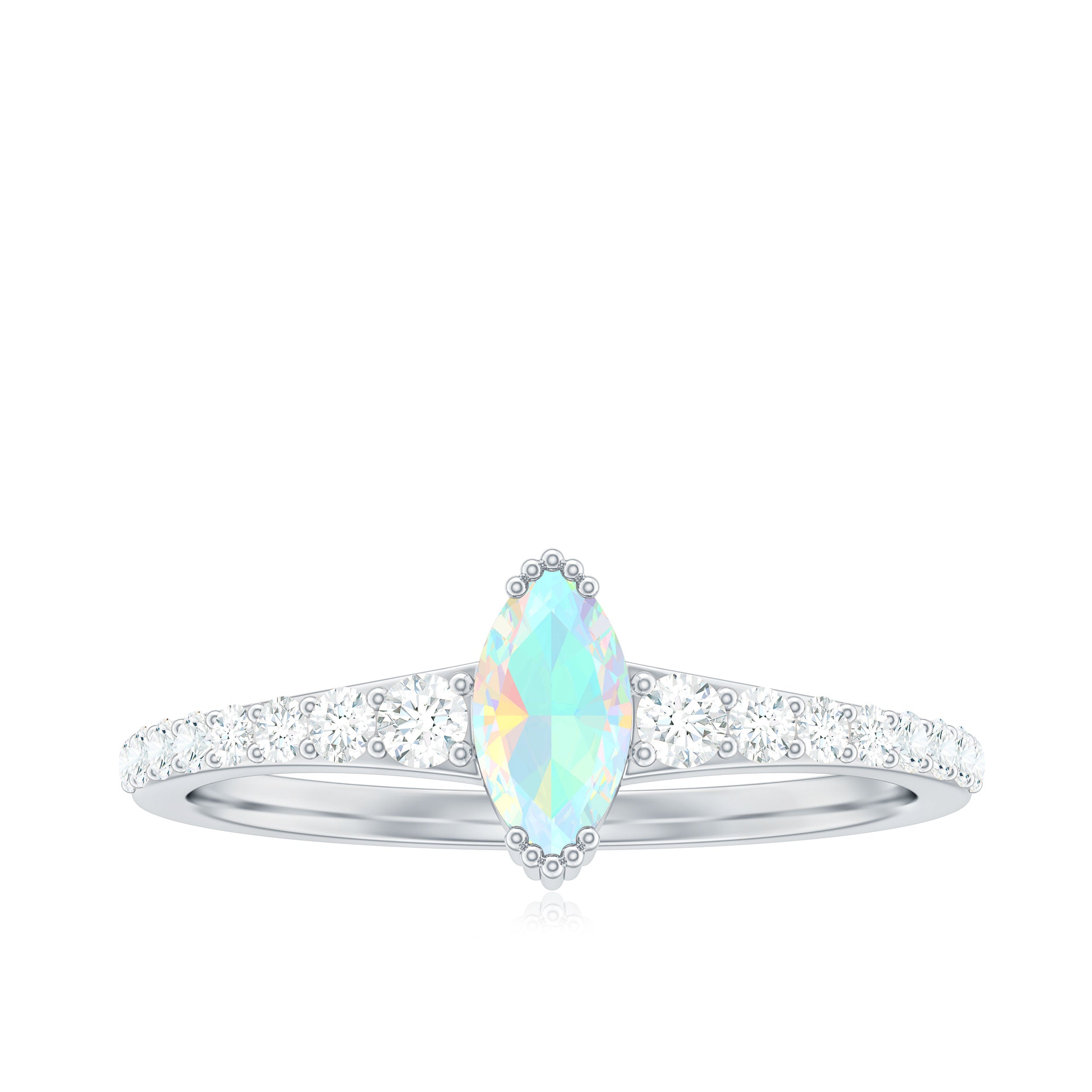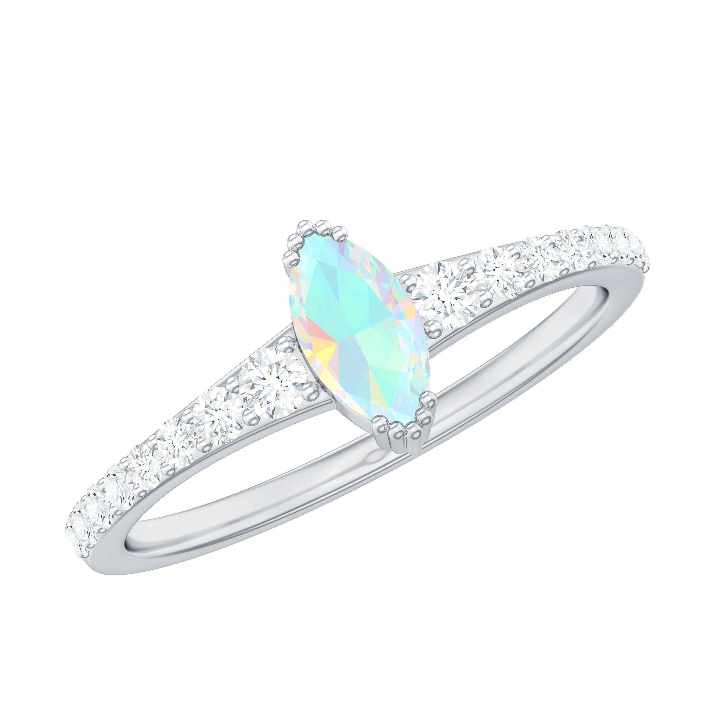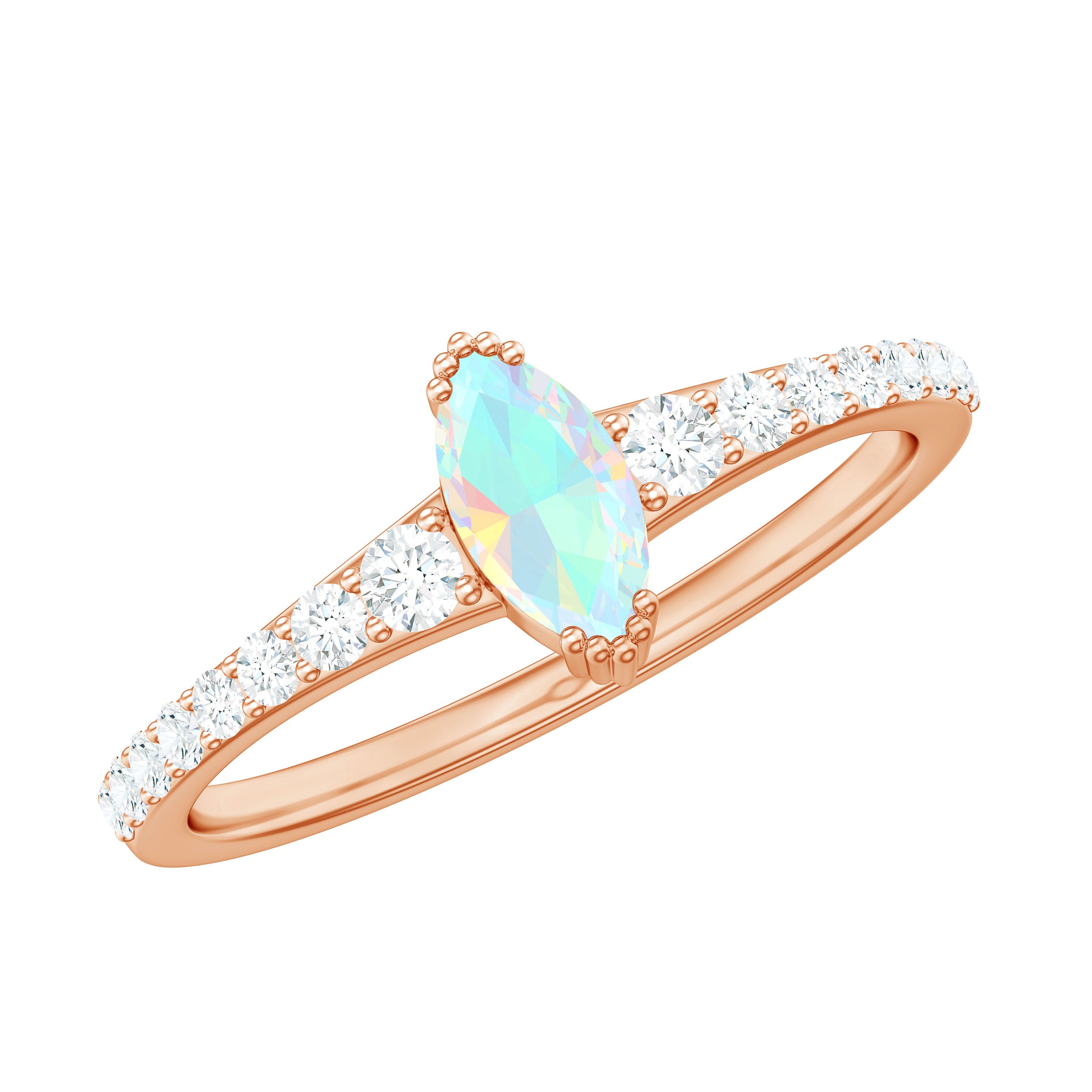 Certified Marquise Opalescent Promise Ring with Real Diamond