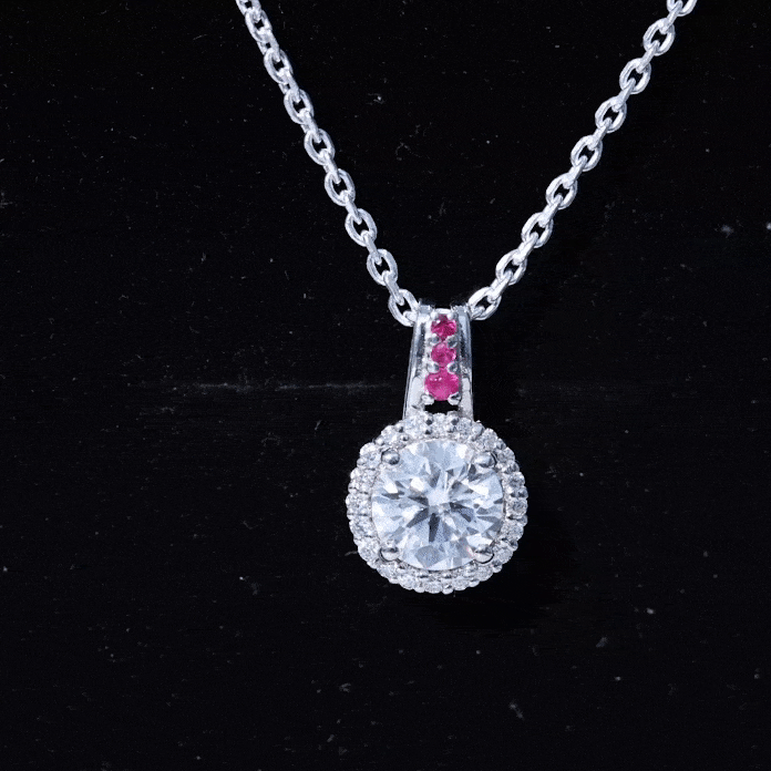 Certified MM Lab Grown Diamond Halo Necklace With Ruby Accent Bail