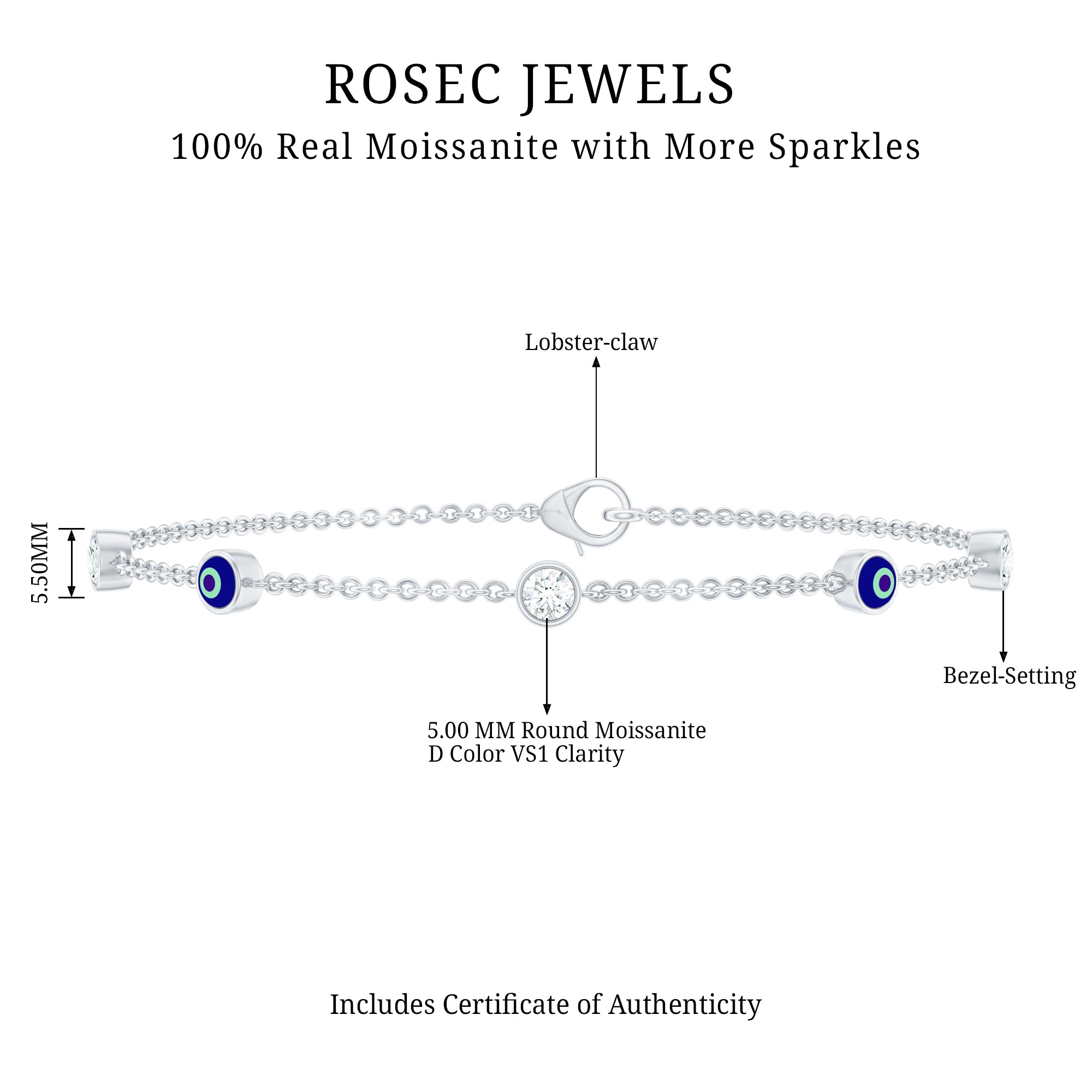 Certified Moissanite and Evil Eye Station Chain Bracelet