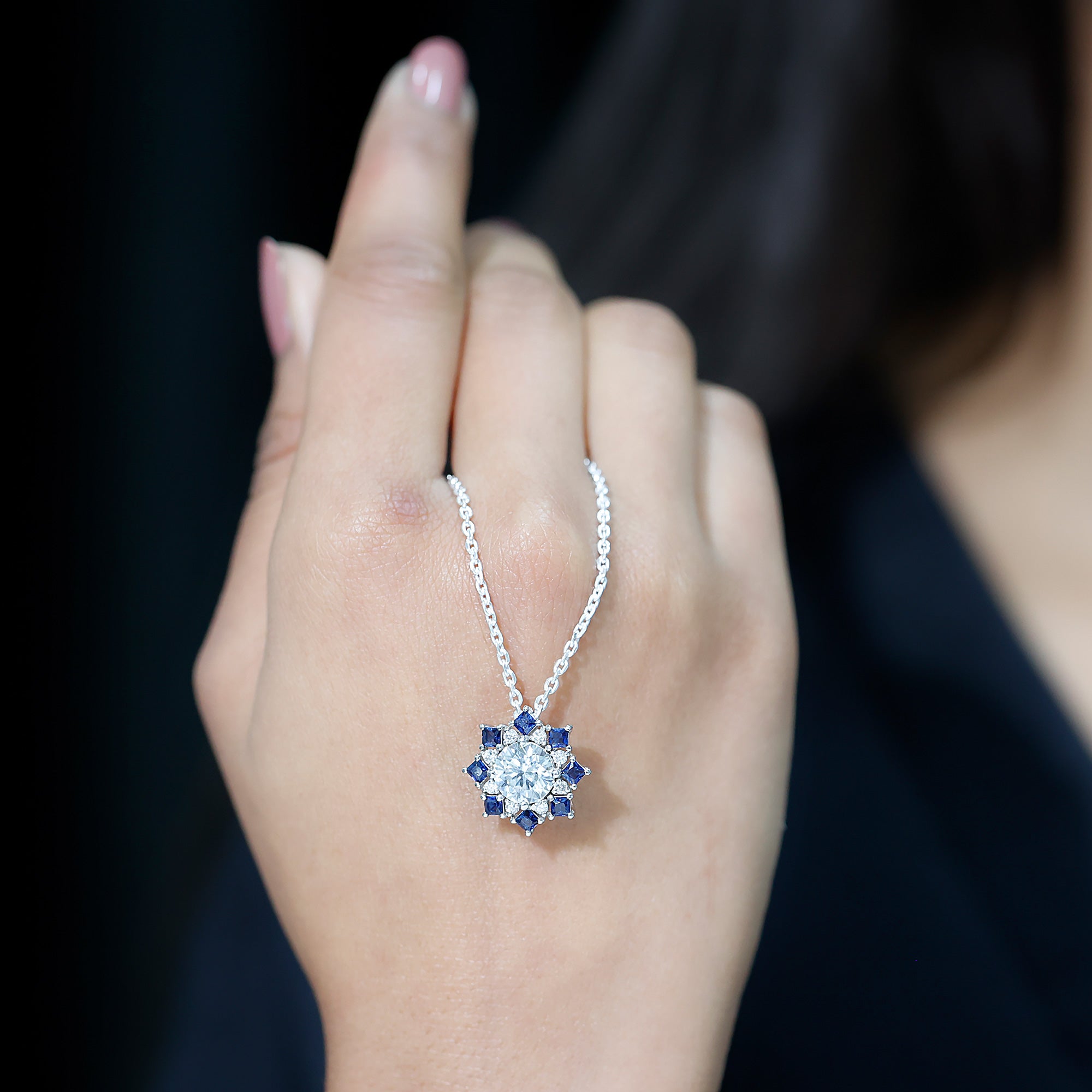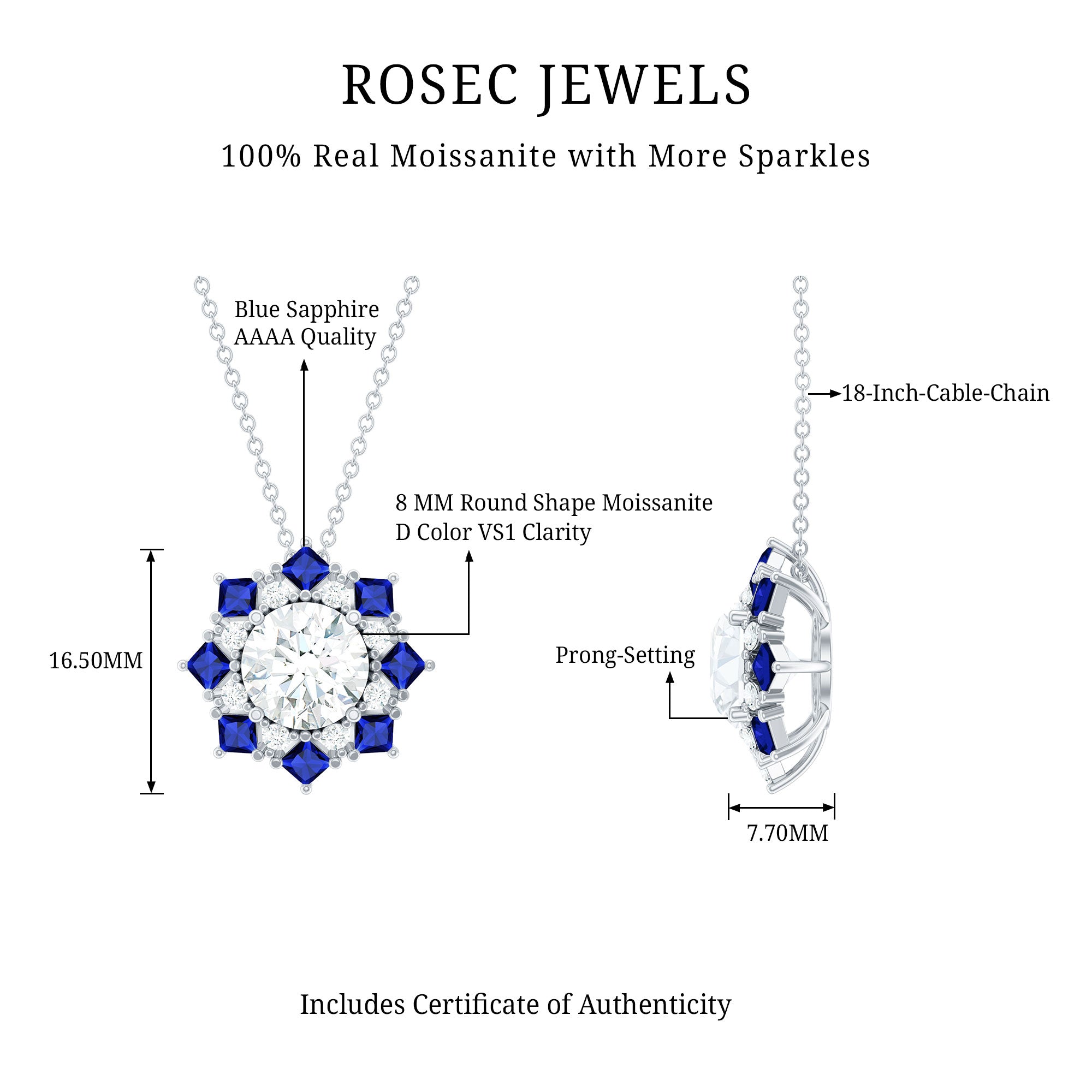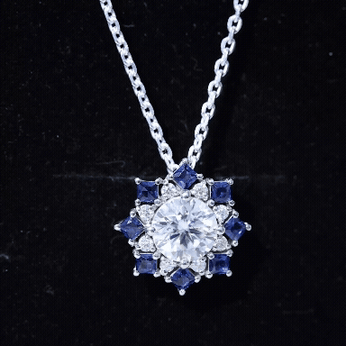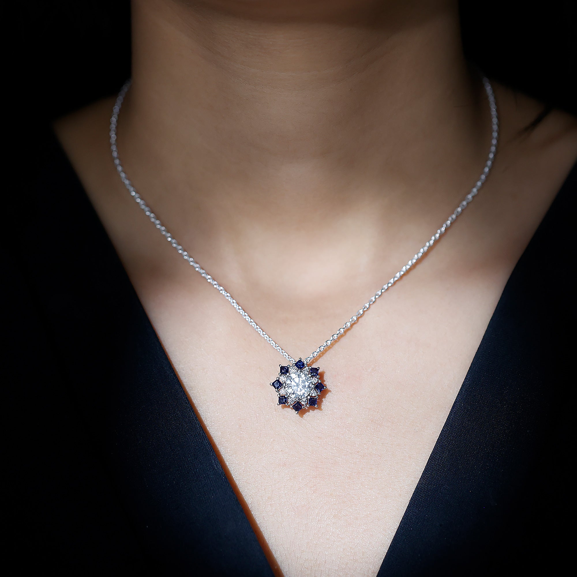 Certified Moissanite and Lab Sapphire Designer Necklace With Chain
