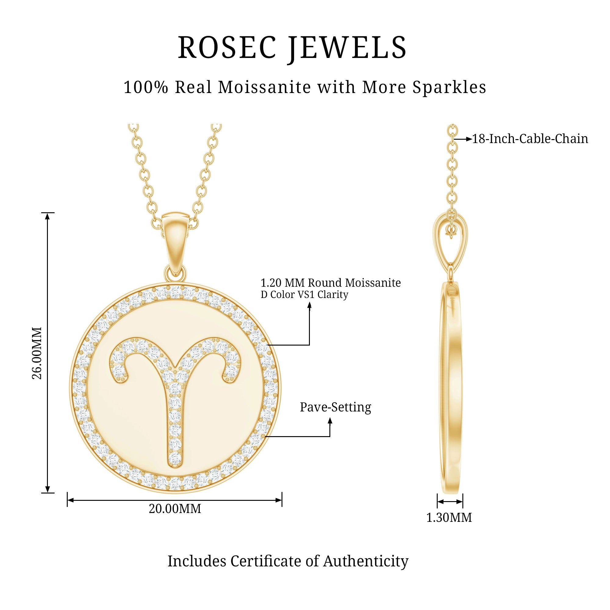 Certified Moissanite Aries Zodiac Disc Pendant