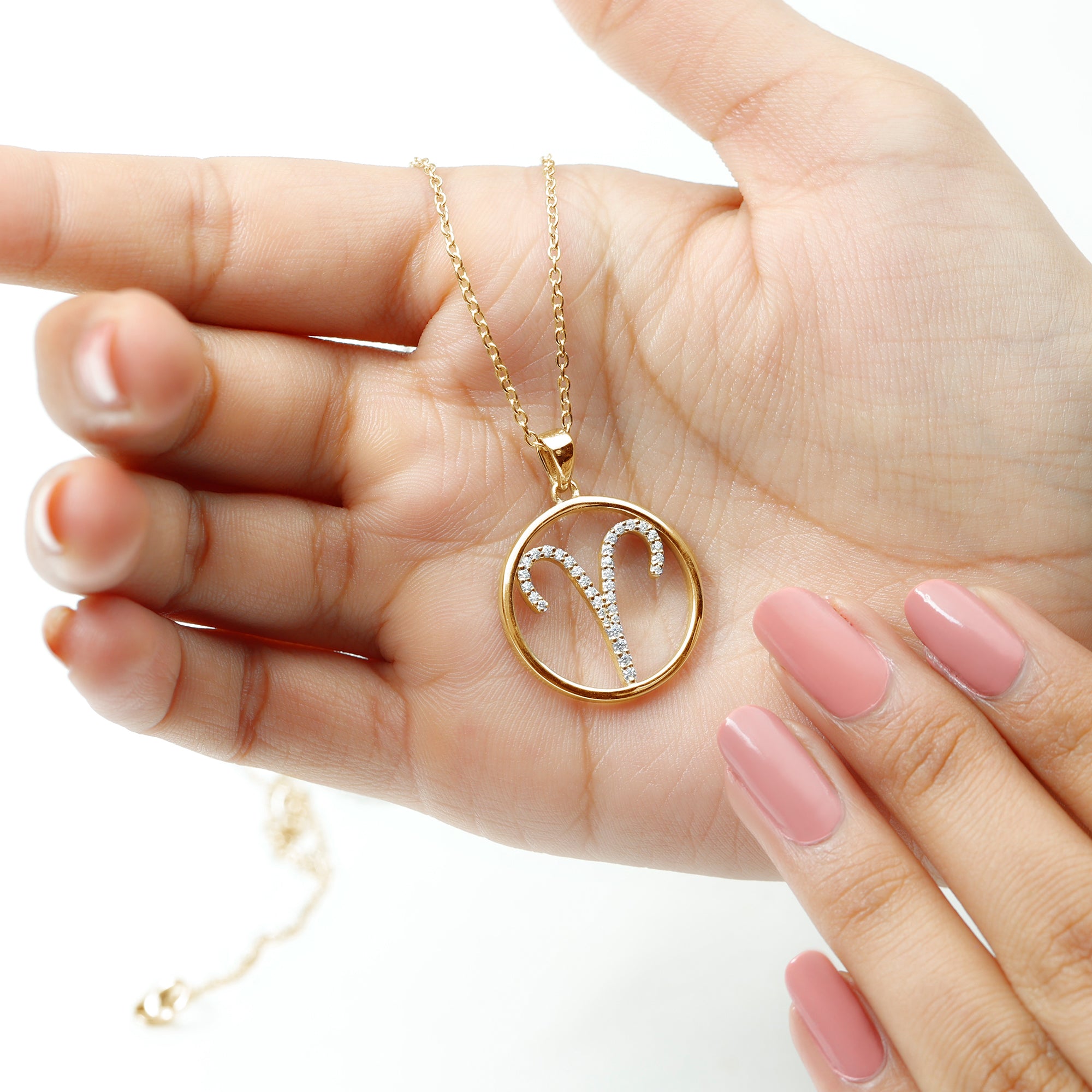 Certified Moissanite Aries Zodiac Sign Pendant Necklace
